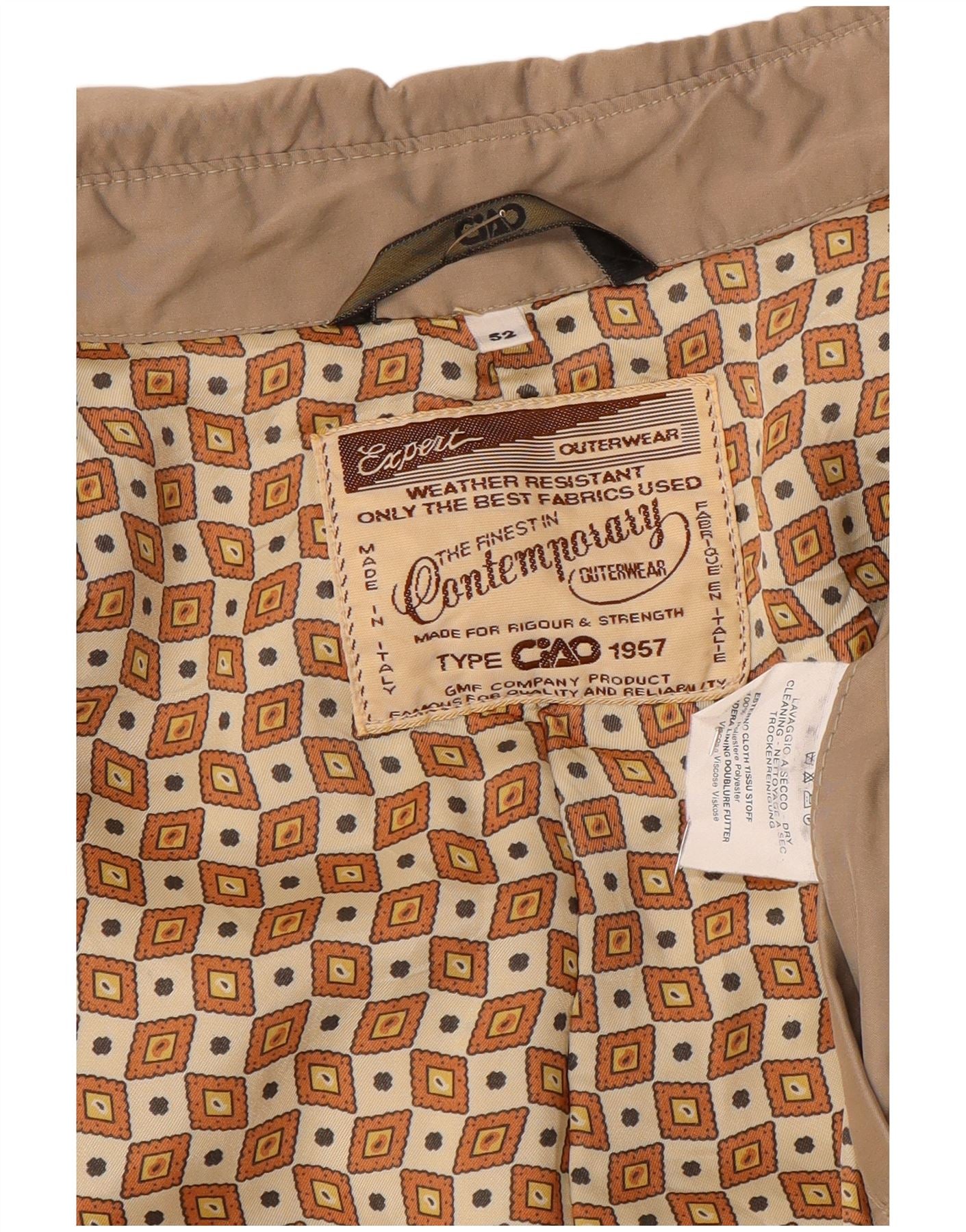 - AI beskrivelse: Denne moderne regnfrakke til mænd er lavet af et beige blandet stof, der tilbyder en glat, vandafvisende finish. Den har en klassisk halsudskæring og lange ærmer. Den almindelige pasform sikrer behageligt slid. En knaplukning giver en pæn front. Interiøret har en karakteristisk abstrakt mønsterforing. Der medfølger praktiske lommer, der kombinerer funktion med raffineret elegance.