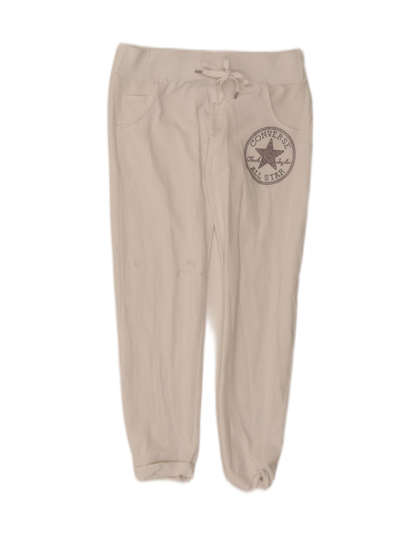 CONVERSE Womens Graphic Tracksuit Trousers Joggers UK 6 XS White