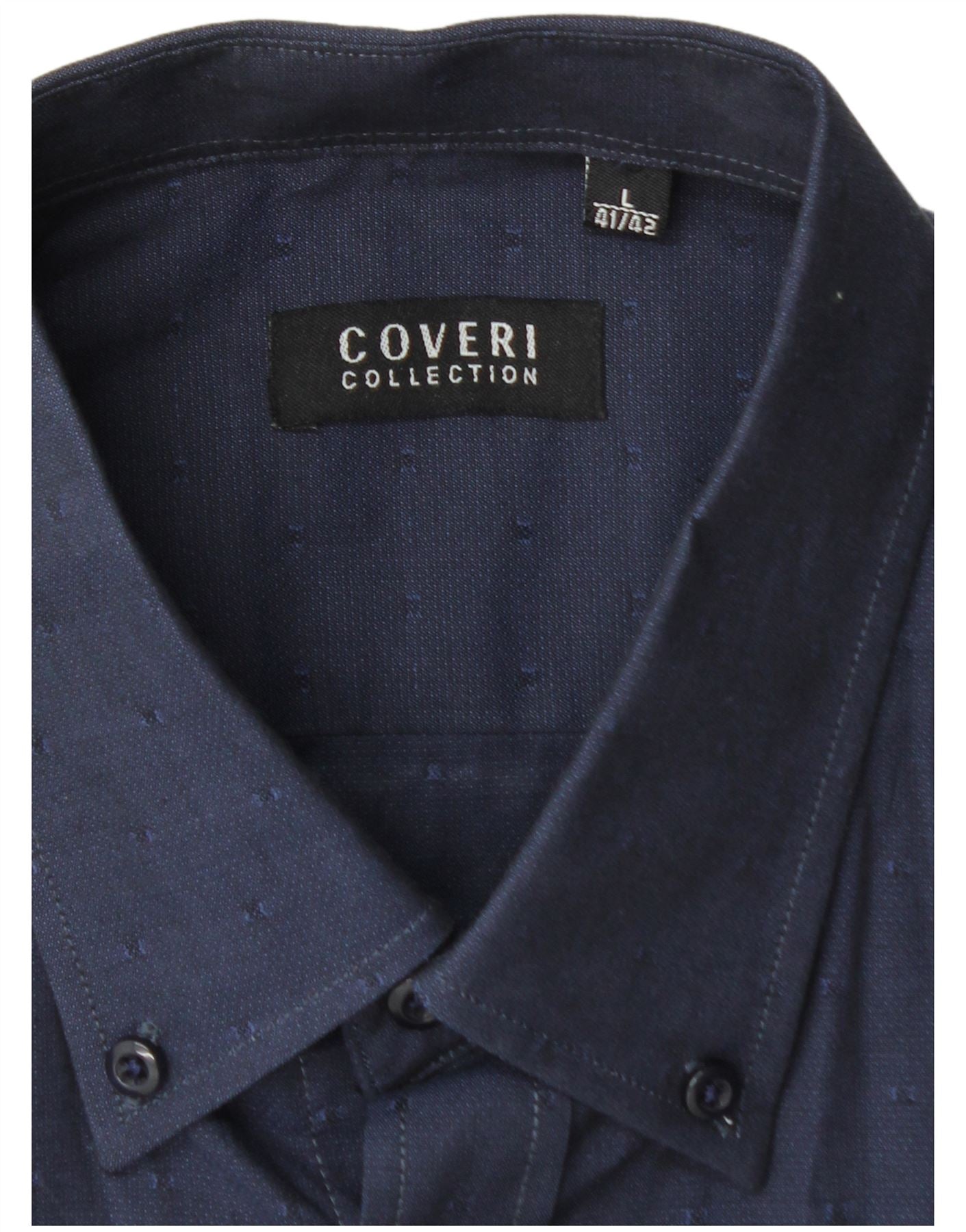 COVERI Herreskjorte str. 41/42 Large Navy Blue Cotton
