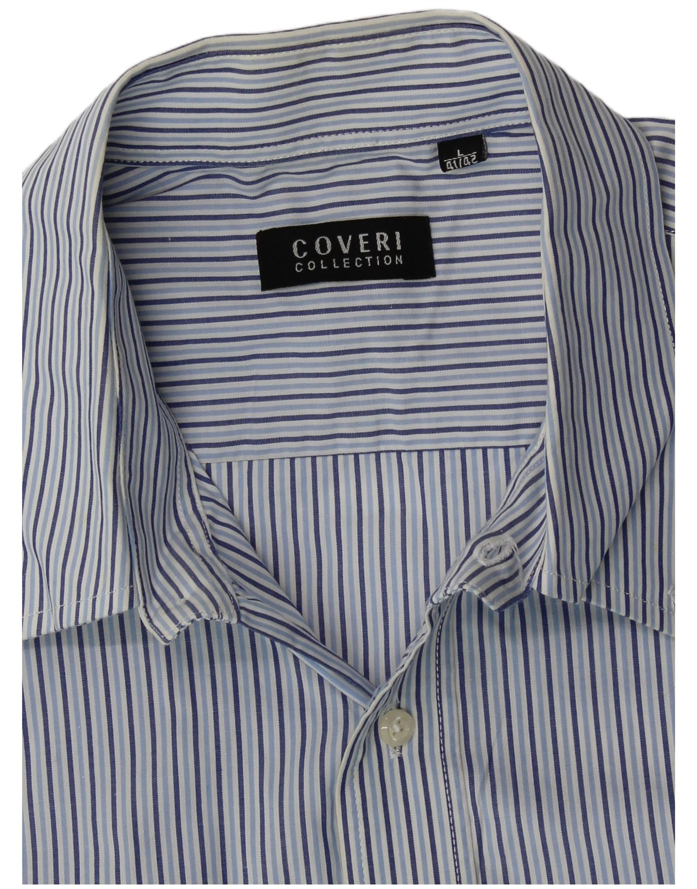 Coveri Kortærmet Herreskjorte Størrelse 41/42 Stor Blå Nålestribe