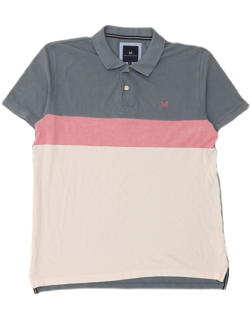 CREW CLOTHING Mens Polo Shirt Large Blue Colourblock Cotton