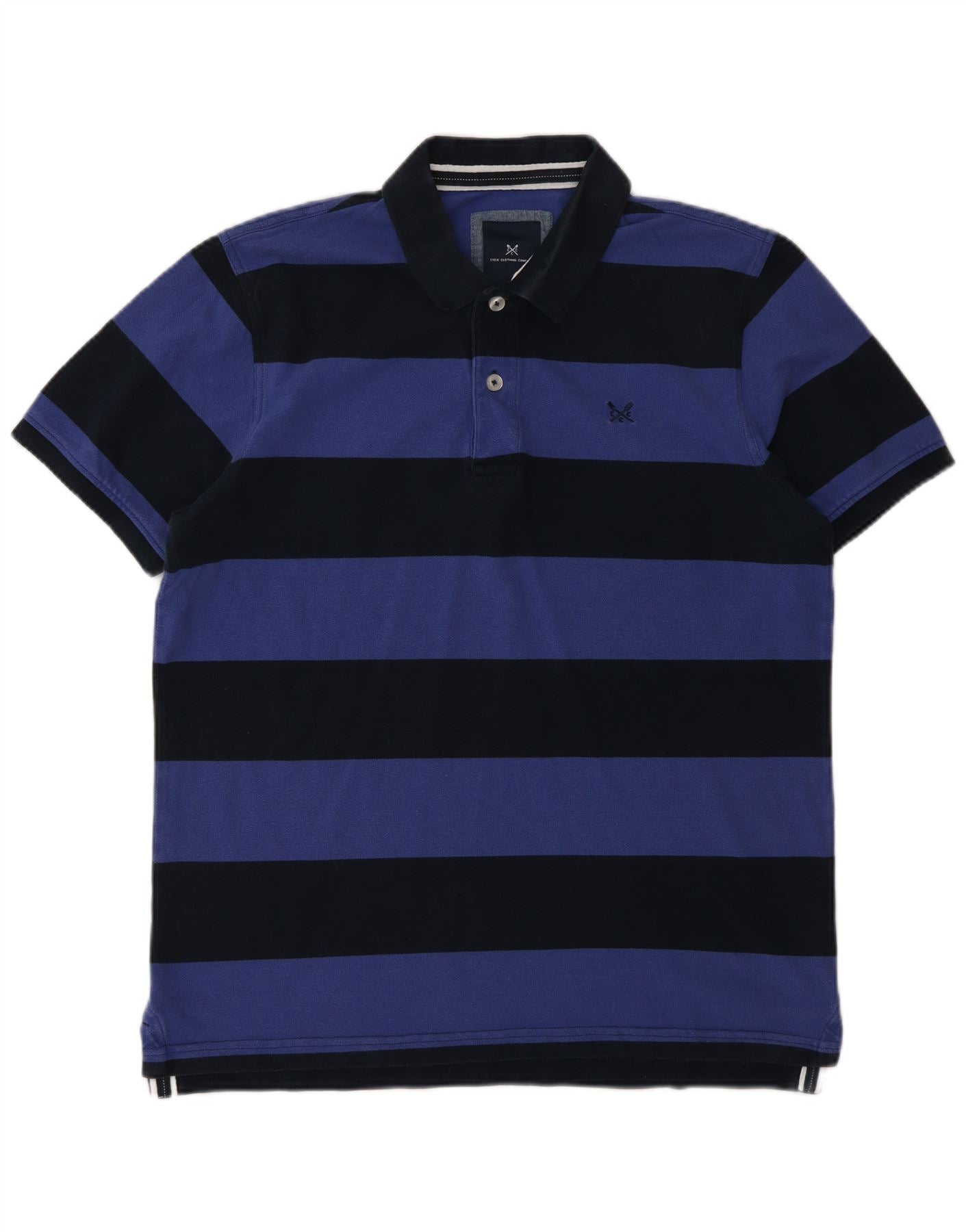 CREW CLOTHING Mens Polo Shirt Large Navy Blue Striped Cotton