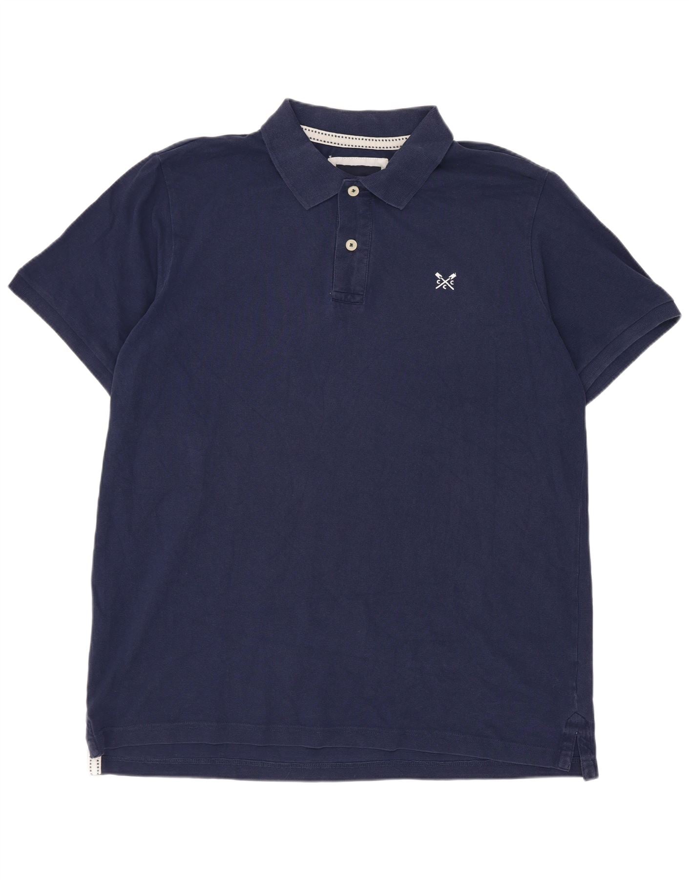 - AI beskrivelse: Denne Crew Clothing herre poloshirt er lavet af blød marineblå 100 procent bomuldsstrik. Den har en klassisk kraveudskæring og en knappestolpe for et tidløst look. Korte ærmer og en normal pasform sikrer behageligt slid. Et broderet logo på brystet tilføjer en subtil mærkedetalje. Dette alsidige stykke tilbyder afslappet sofistikering.