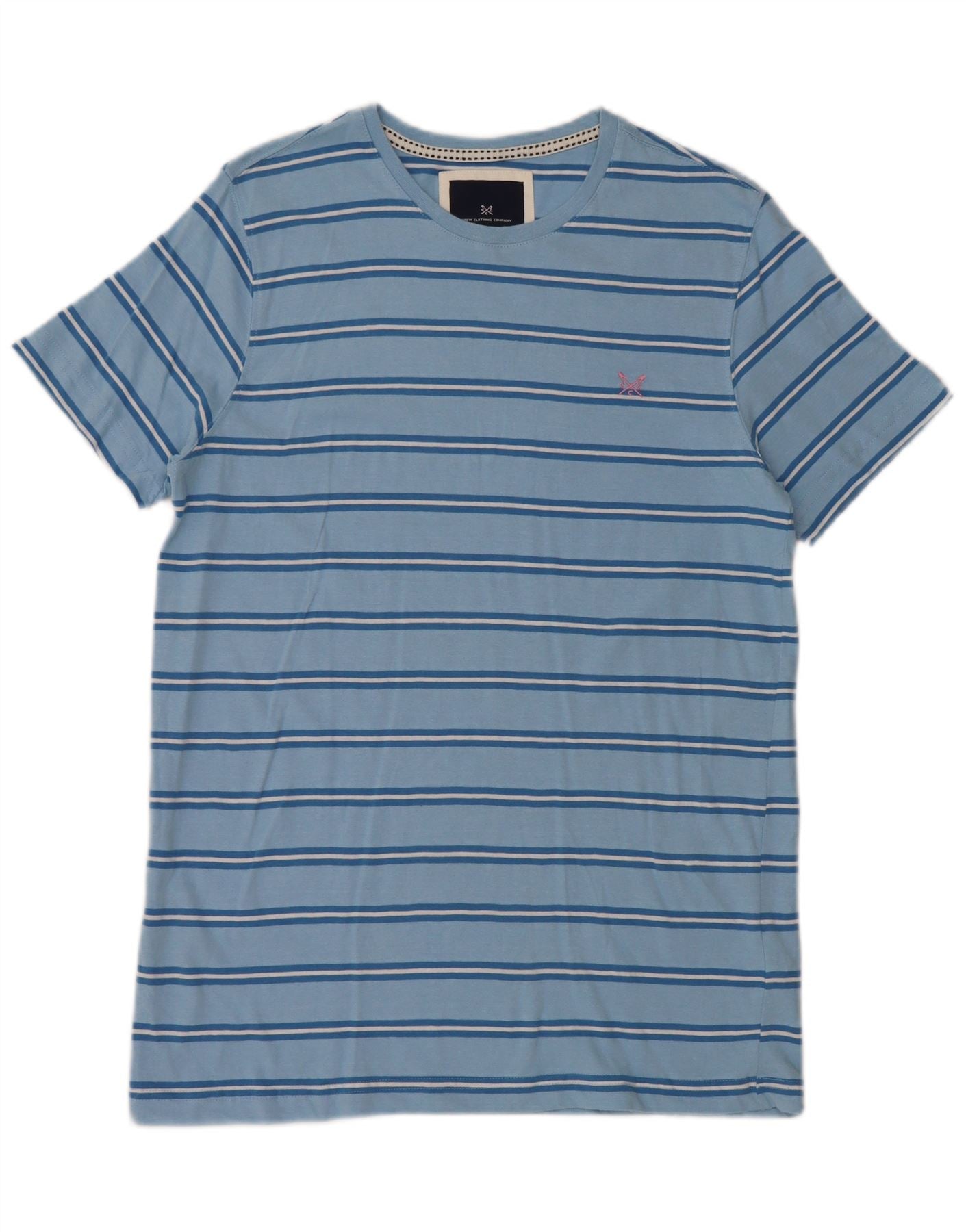 CREW CLOTHING Herre T-Shirt Top Medium Blå Stribet Bomuld
