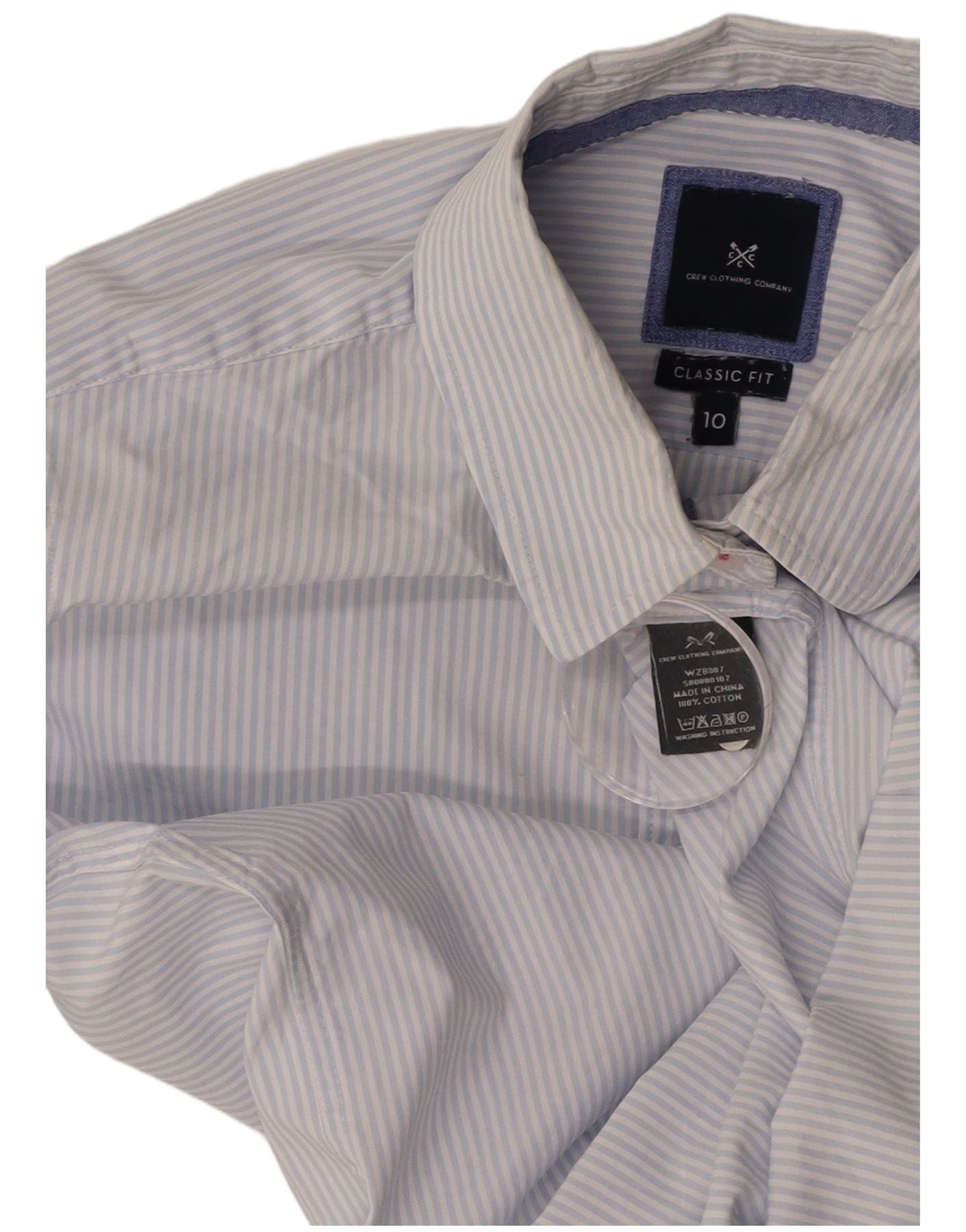 CREW CLOTHING Dame Classic Fit skjorte UK 10 Lille blå stribet bomuld