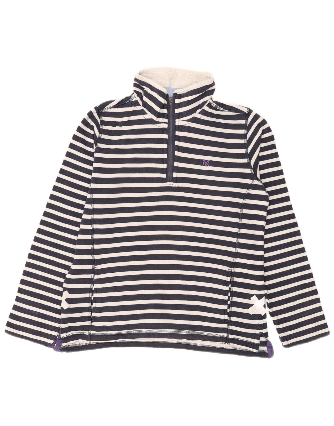 - AI beskrivelse: Denne Crew Clothing T-shirt top til kvinder er lavet af blød bomuldsjersey. Det stribede mønster giver en nautisk stil. Den har en halsudskæring og lange ærmer. En normal pasform sikrer komfort. Den 1/4 lynlåshals tilføjer en praktisk detalje. Denne top er ideel til hverdagstøj.