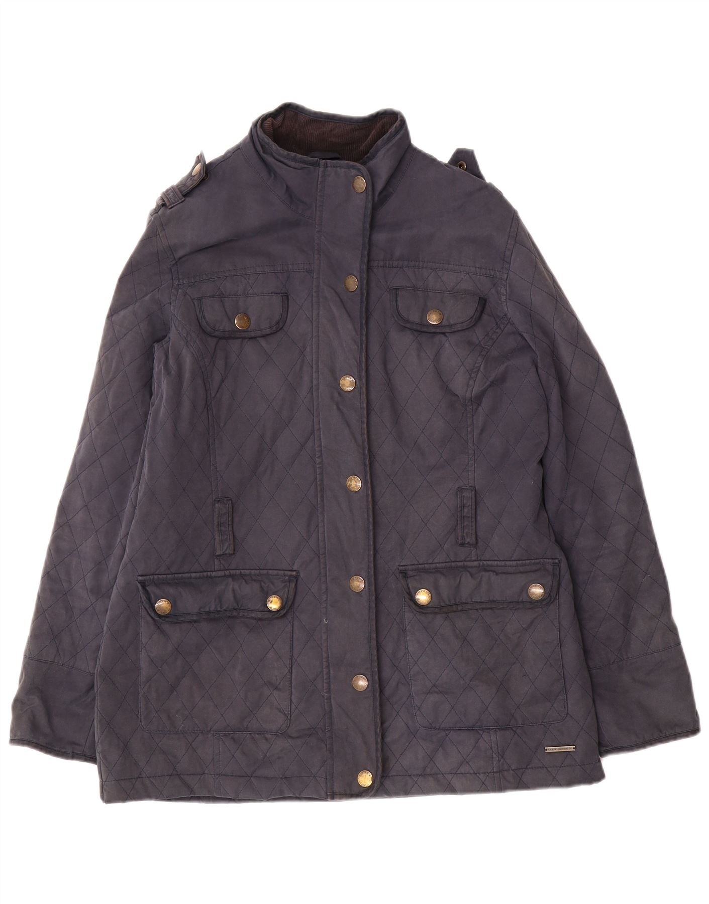 CREW CLOTHING Dame Military Quilted Jacket UK 14 Large Navy Blue Bomuld
