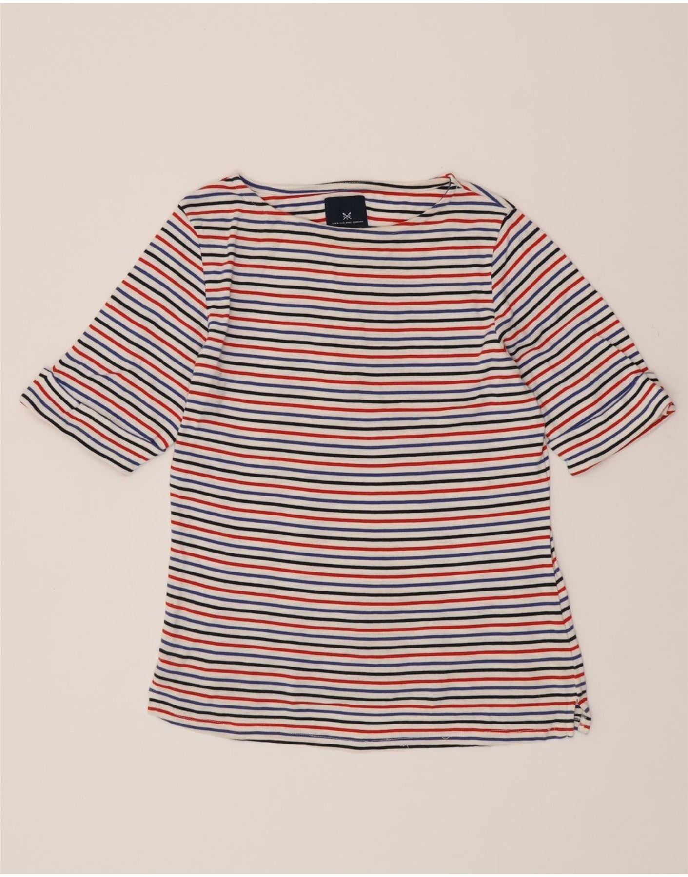 CREW CLOTHING Dame T-Shirt Top UK 14 Medium Flerfarvet Stribet Bomuld