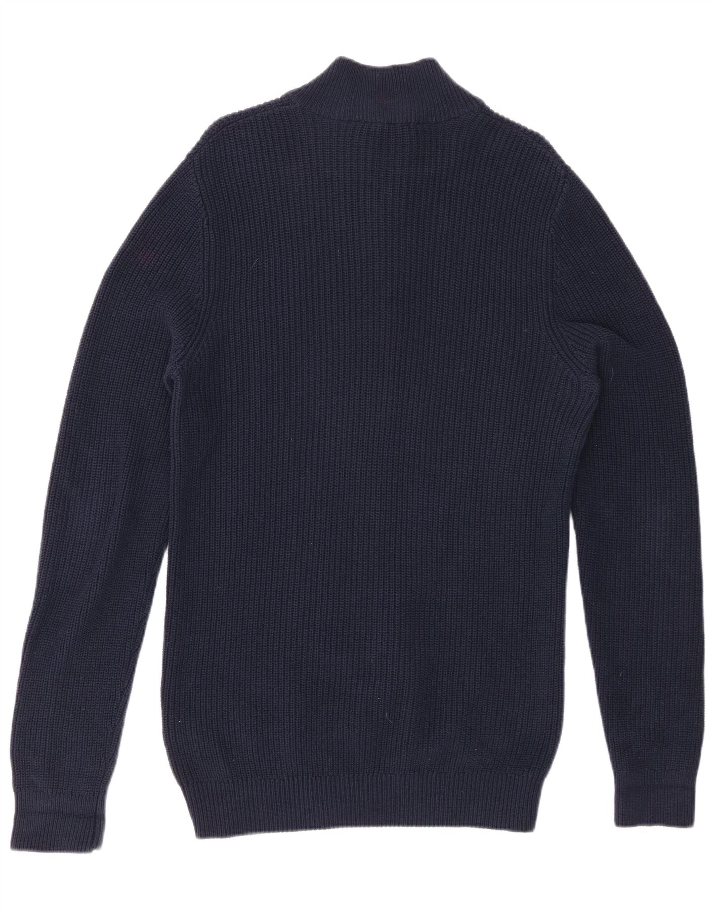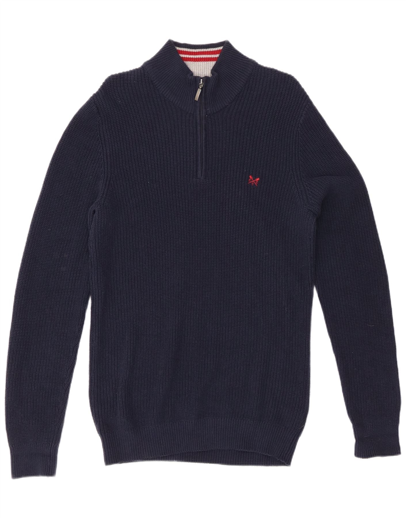 CREW CLTHING Dame sweater med lynlås-hals UK 14 Mellem marineblå bomuld