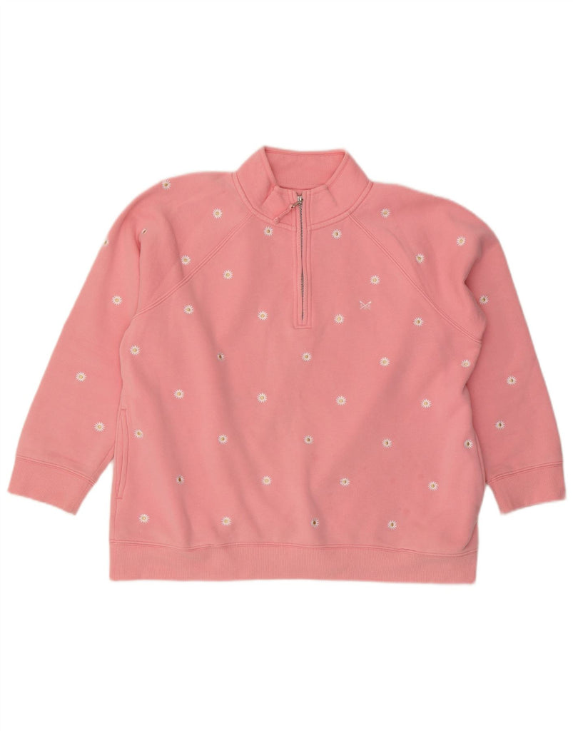 CREW CLOTHING Womens Zip Neck Sweatshirt Jumper UK 16 Large Pink Floral
