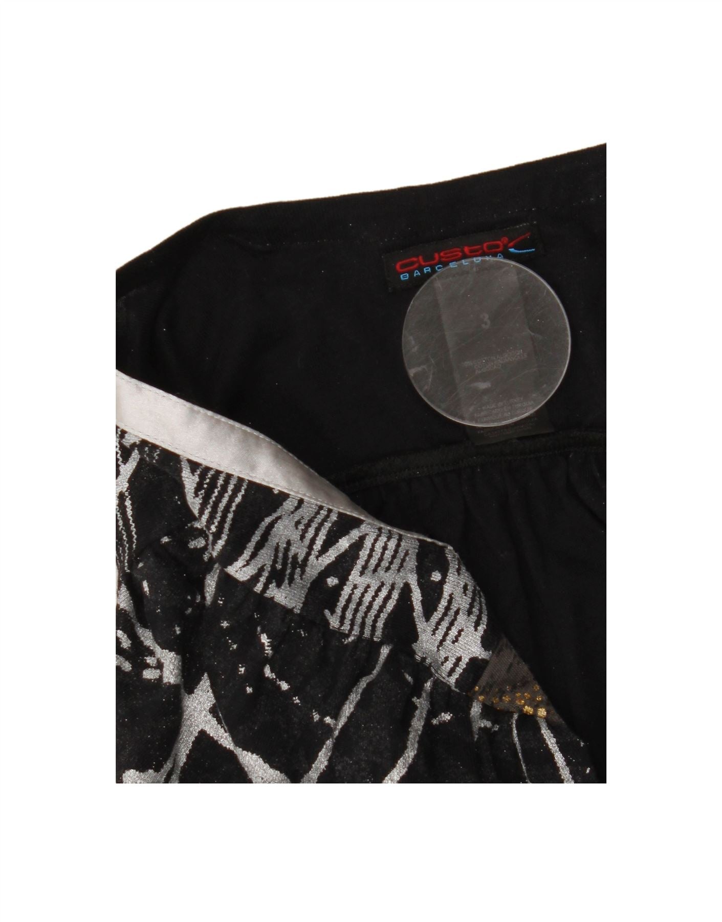 - AI Description: This Custo Barcelona women's Empire dress is crafted from a comfortable black knit fabric with stretch. It features an eye-catching geometric abstract pattern throughout. The round neckline and short sleeves offer a classic, relaxed look. Its empire waist creates a flattering silhouette, flowing into a regular fit skirt. The layered detailing adds unique visual depth to the design.