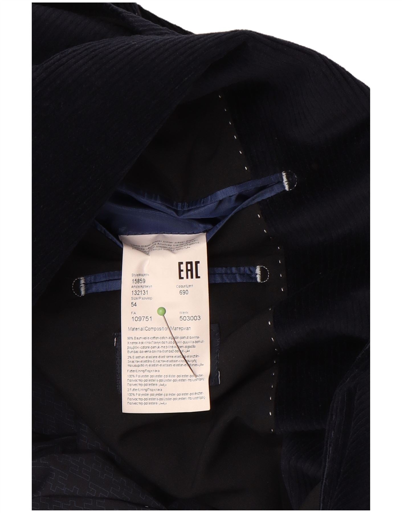 DANIEL HECHTER Mens 2 Button Corduroy Blazer Jacket IT 54 2XL Navy Blue