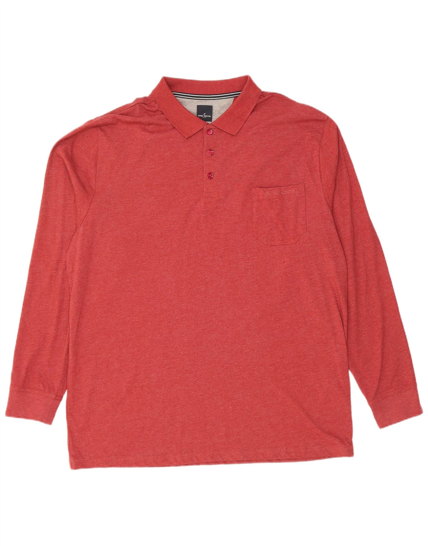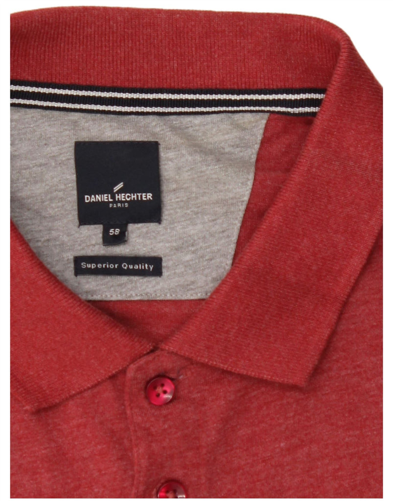 DANIEL HECHTER Mens Long Sleeve Polo Shirt IT 58 2XL Red Cotton
