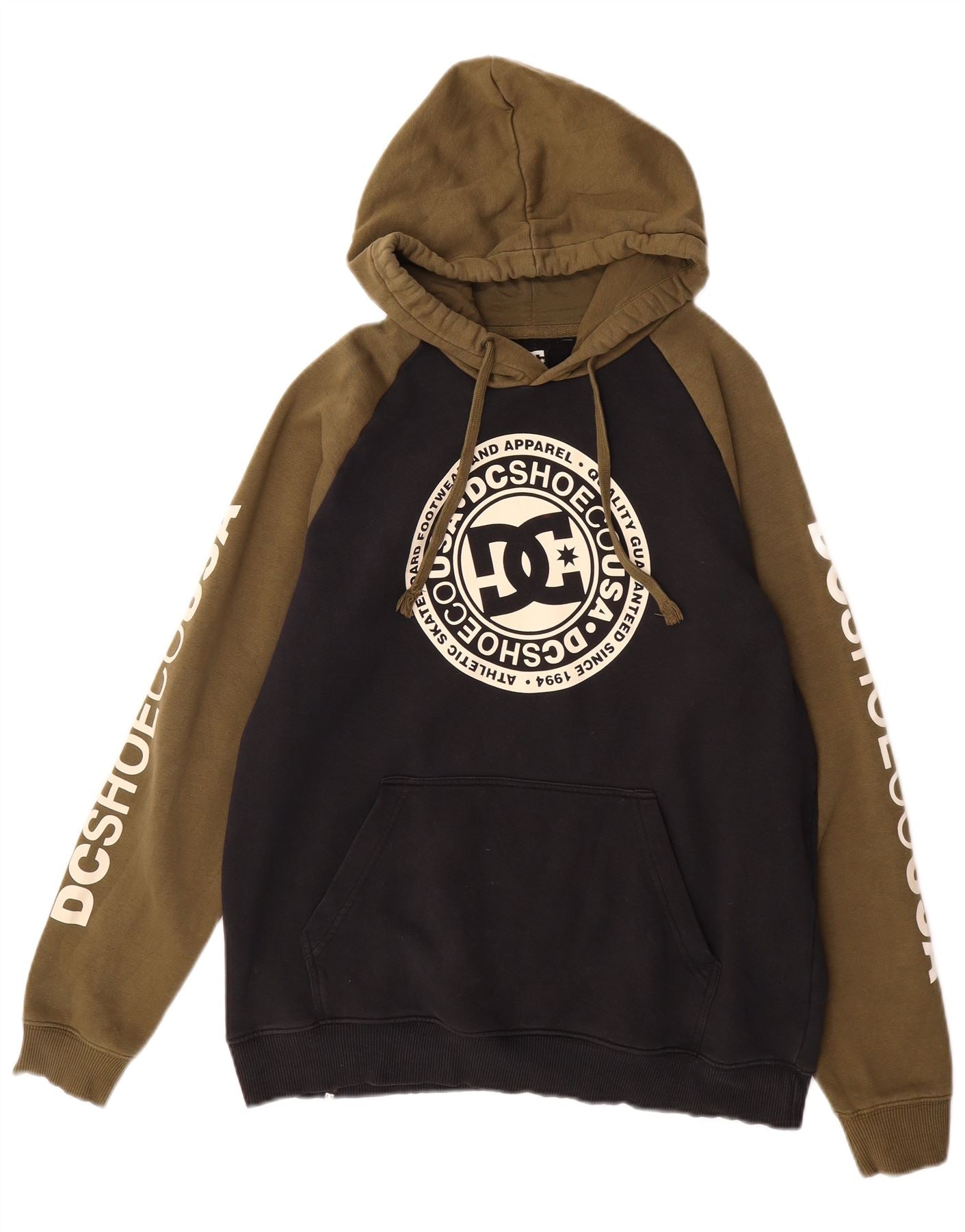 DC Mens Graphic Hoodie Jumper Medium Khaki Colourblock Cotton