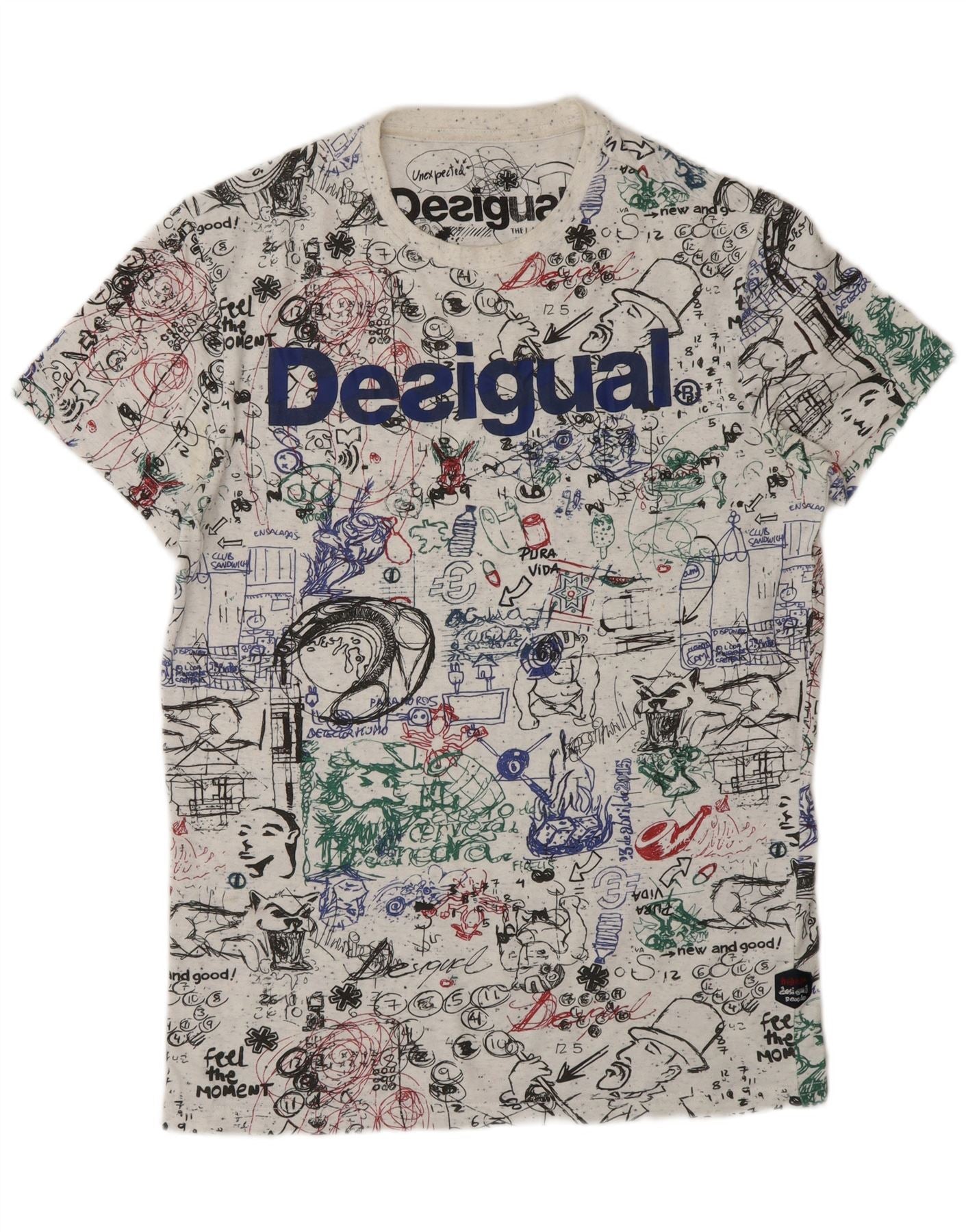 DESIGUAL Herre abstrakt mønster grafisk T-shirt top mellem hvid bomuld