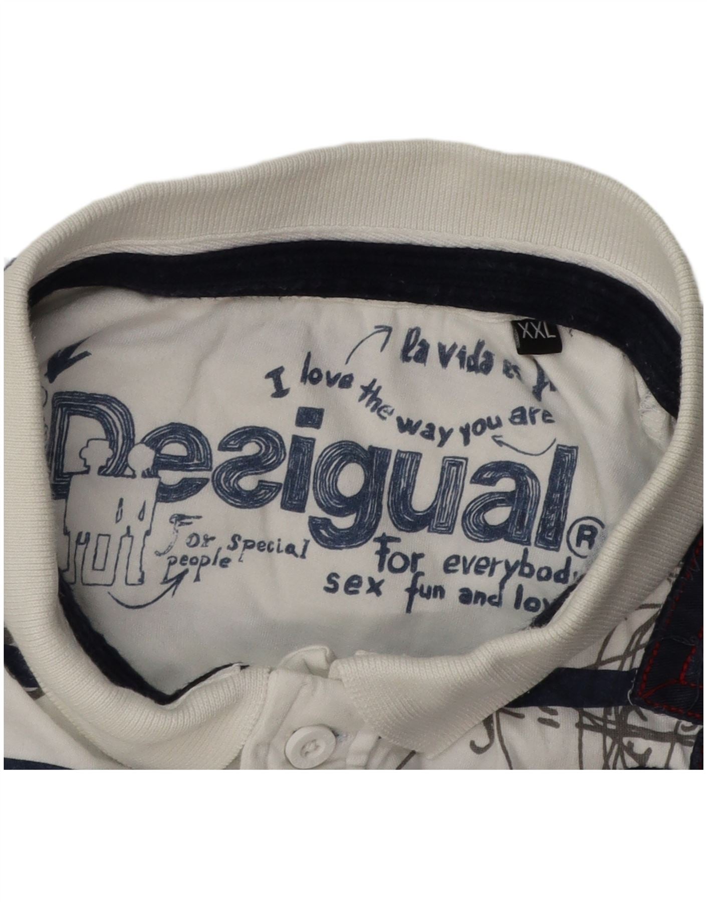 DESIGUAL Grafisk Polo Shirt til mænd 2XL Hvidstribet