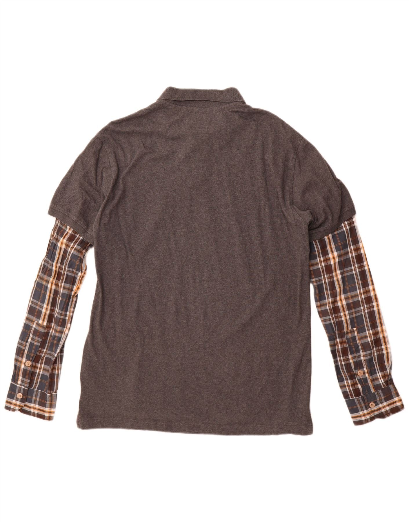 Desigual Langærmet Regular Polo Shirt til mænd XL Grå ternet bomuld