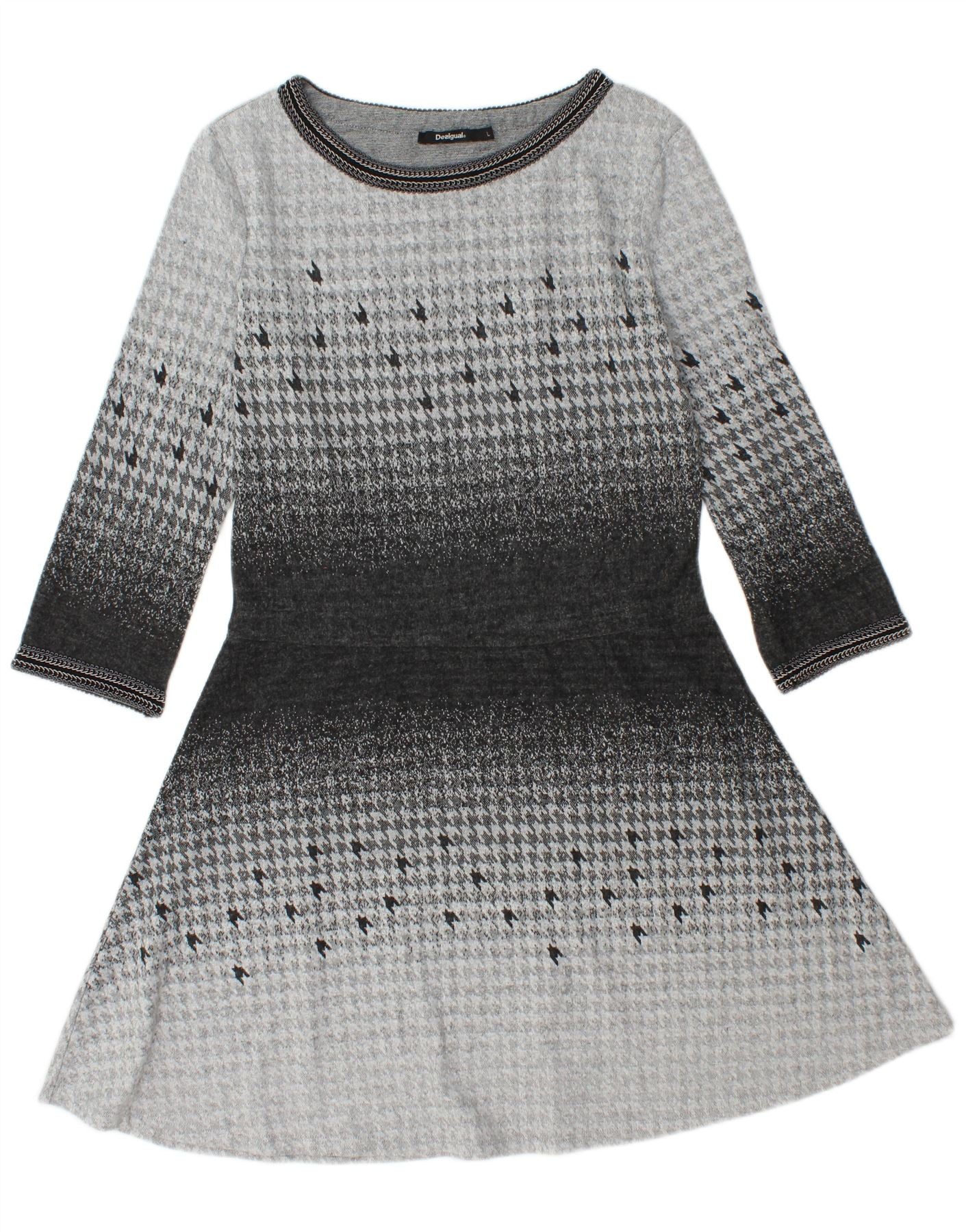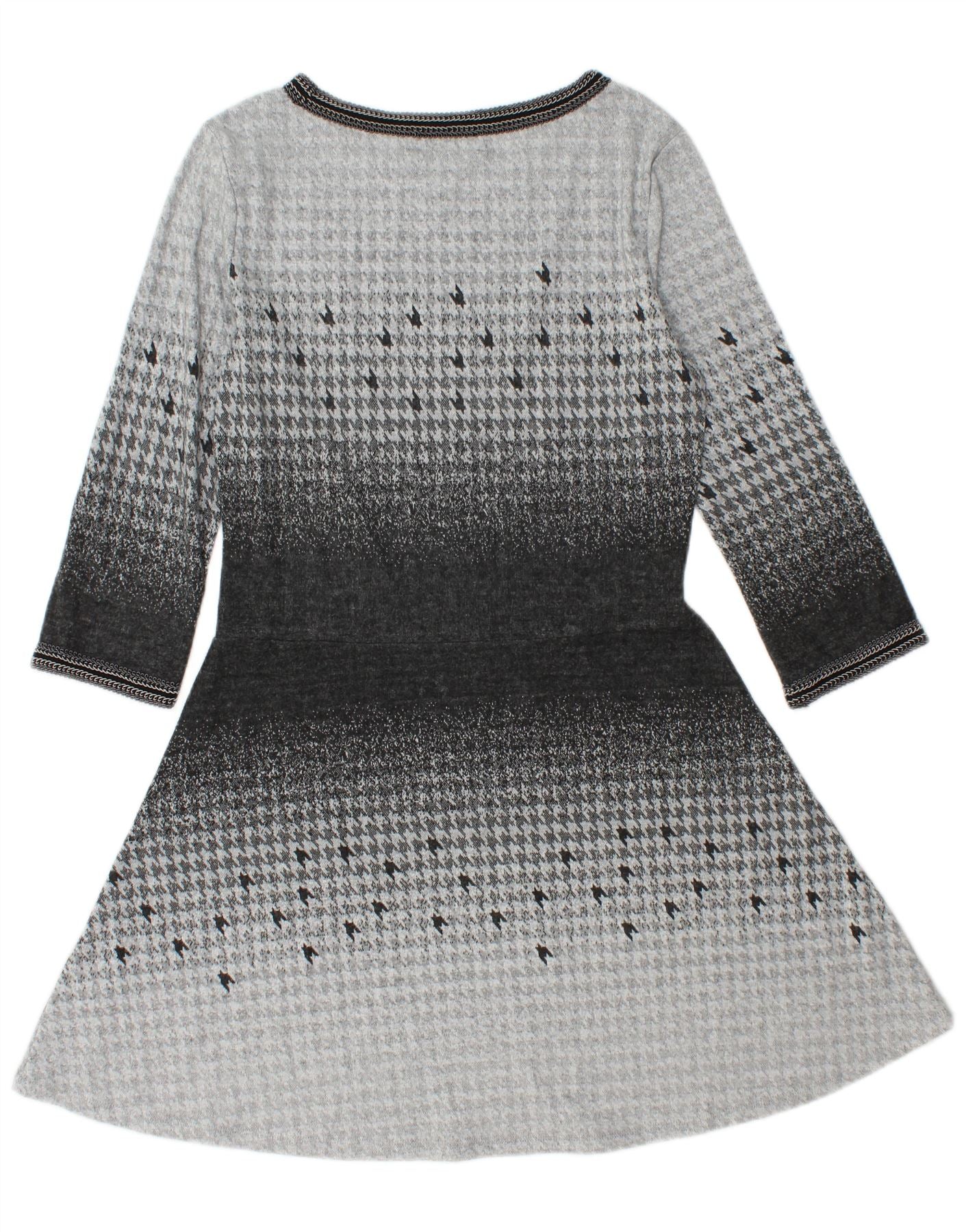 DESIGUAL Kvinder 3/4-ærmet A-line Kjole UK 14 Stor Grå Houndstooth