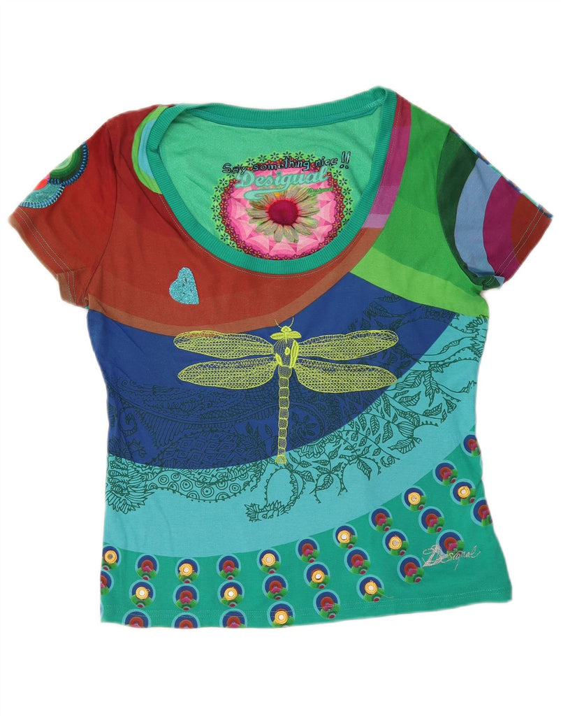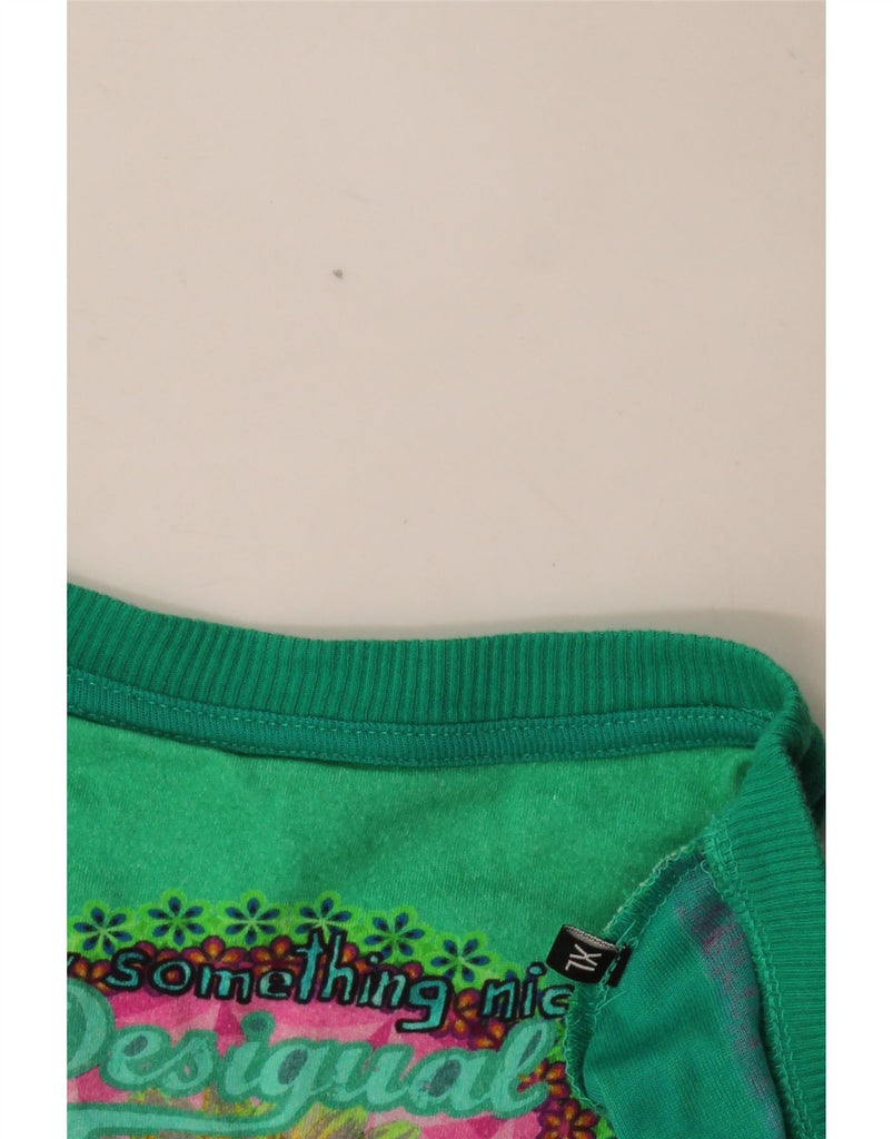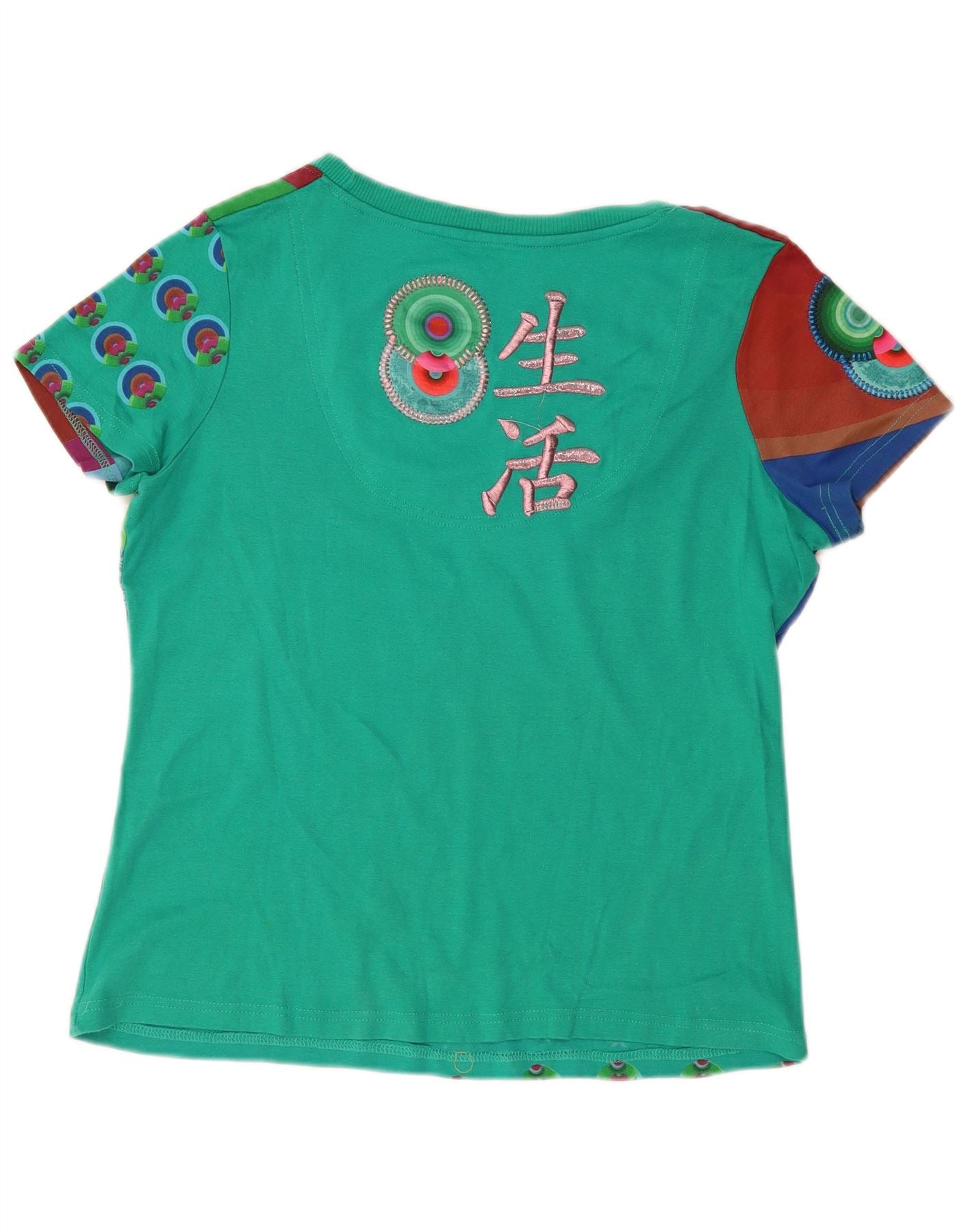 DESIGUAL Womens Abstract Pattern Graphic T-Shirt Top UK 18 XL Green