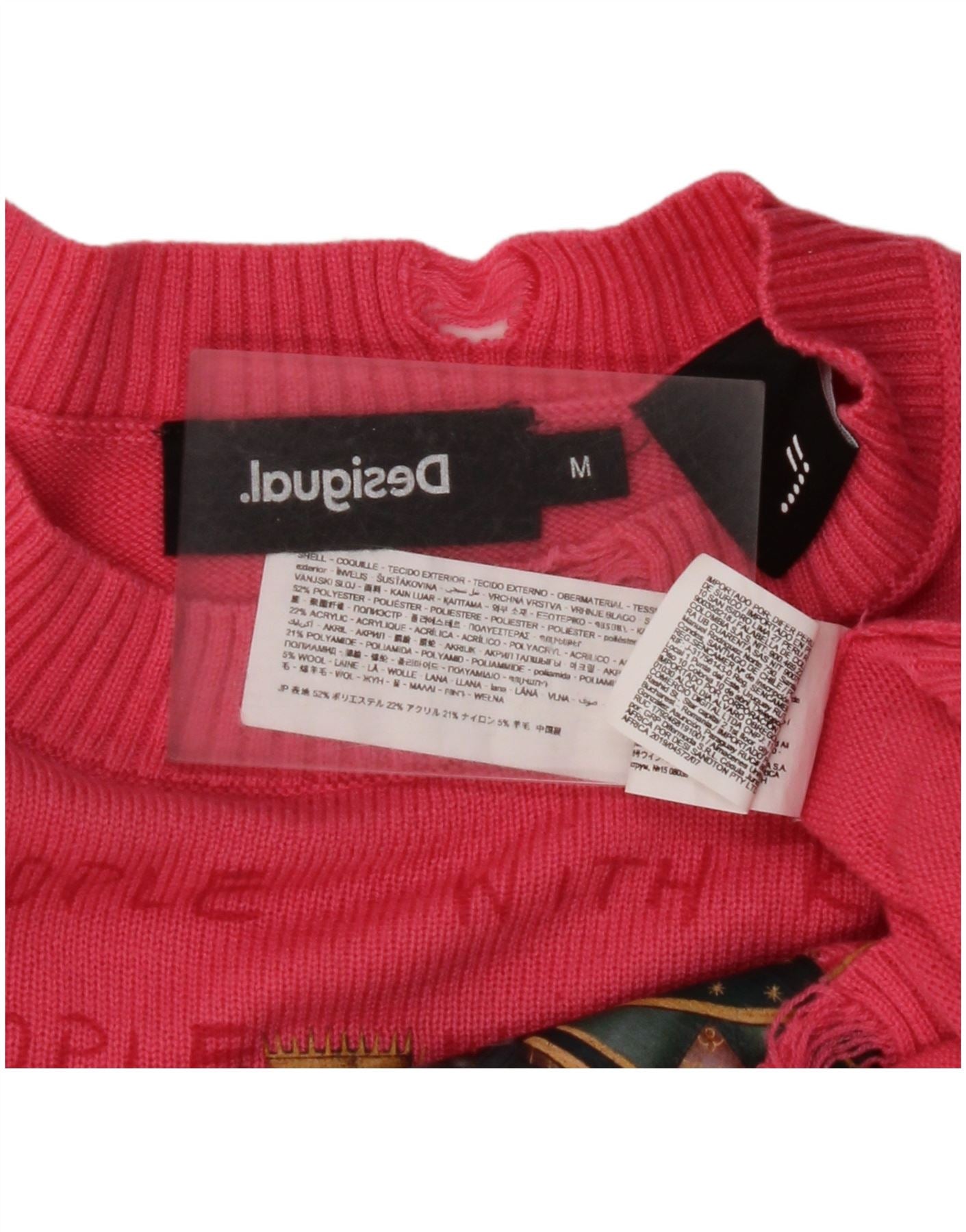 DESIGUAL Womens Crop Grafisk Crew Neck Jumper Sweater UK 14 Medium Pink