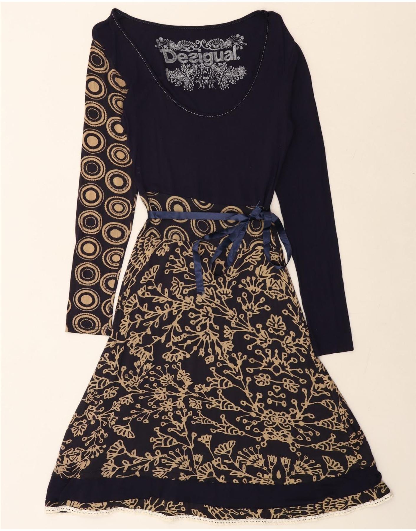 DESIGUAL Kvinders grafisk A-line kjole UK 12 Medium Navy Blue Floral