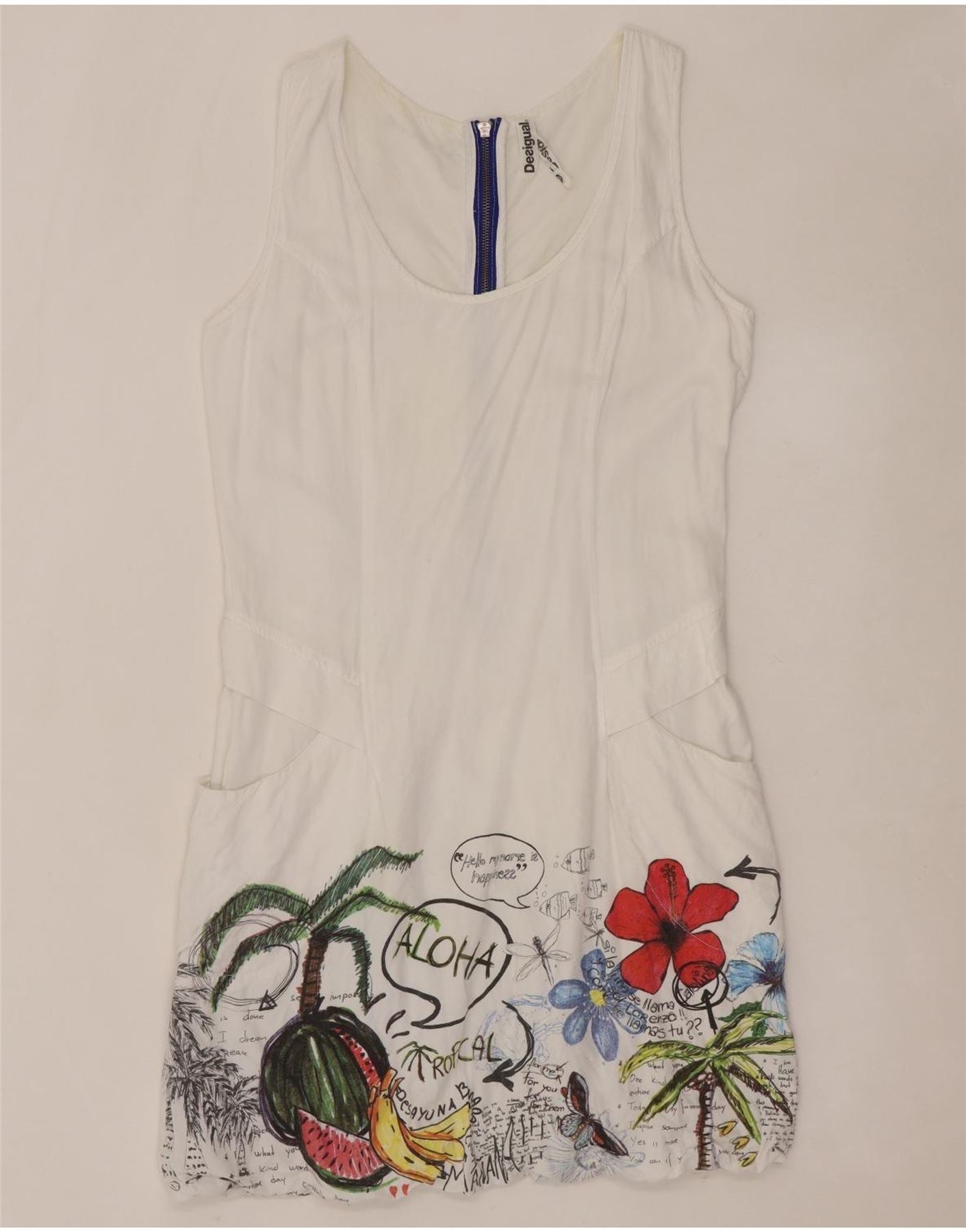 DESIGUAL Kvinders grafisk ærmeløs boblekjole EU 40 Medium White Floral