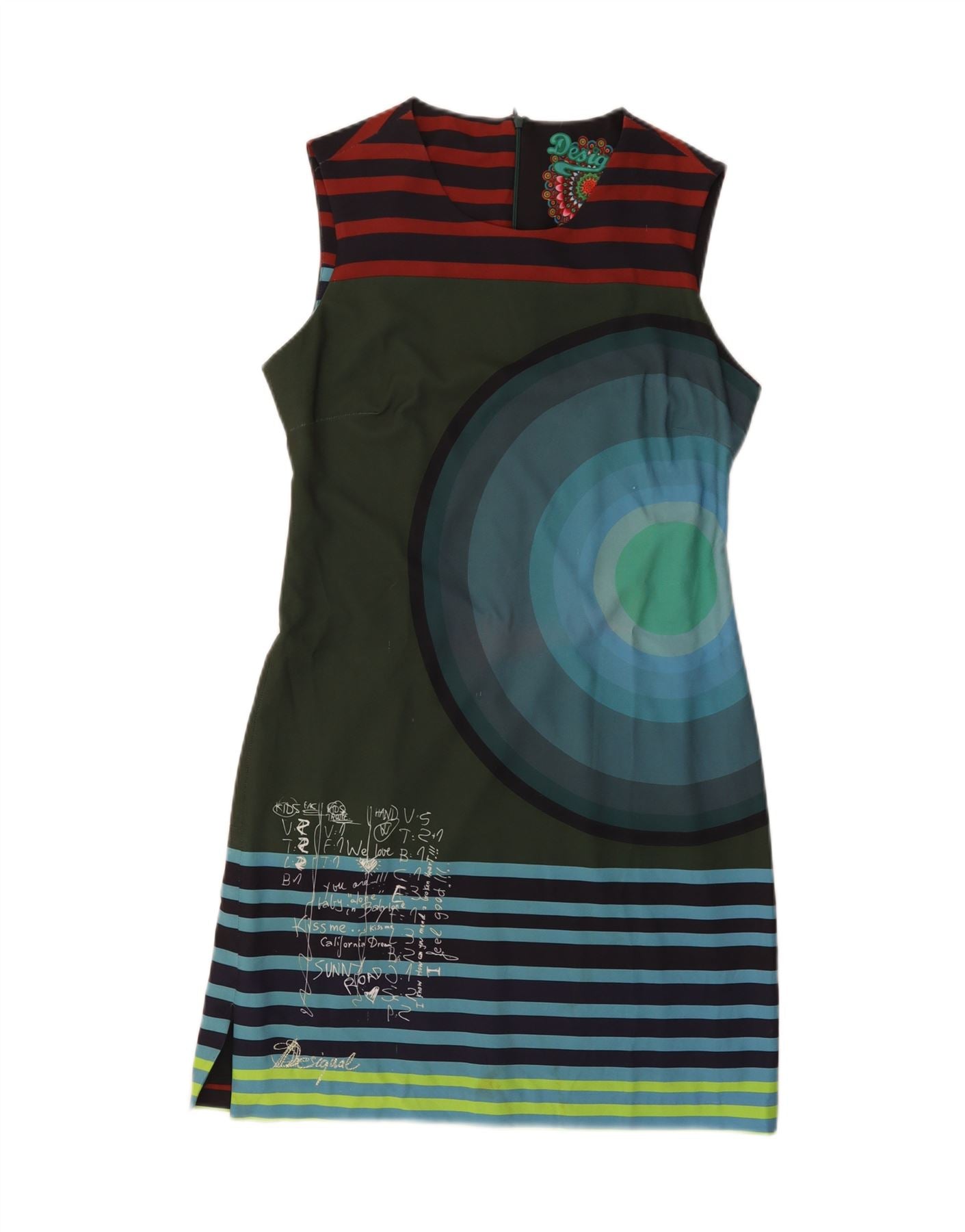 DESIGUAL Womens Graphic Sleeveless Sheath Dress EU 40 Medium Green Striped