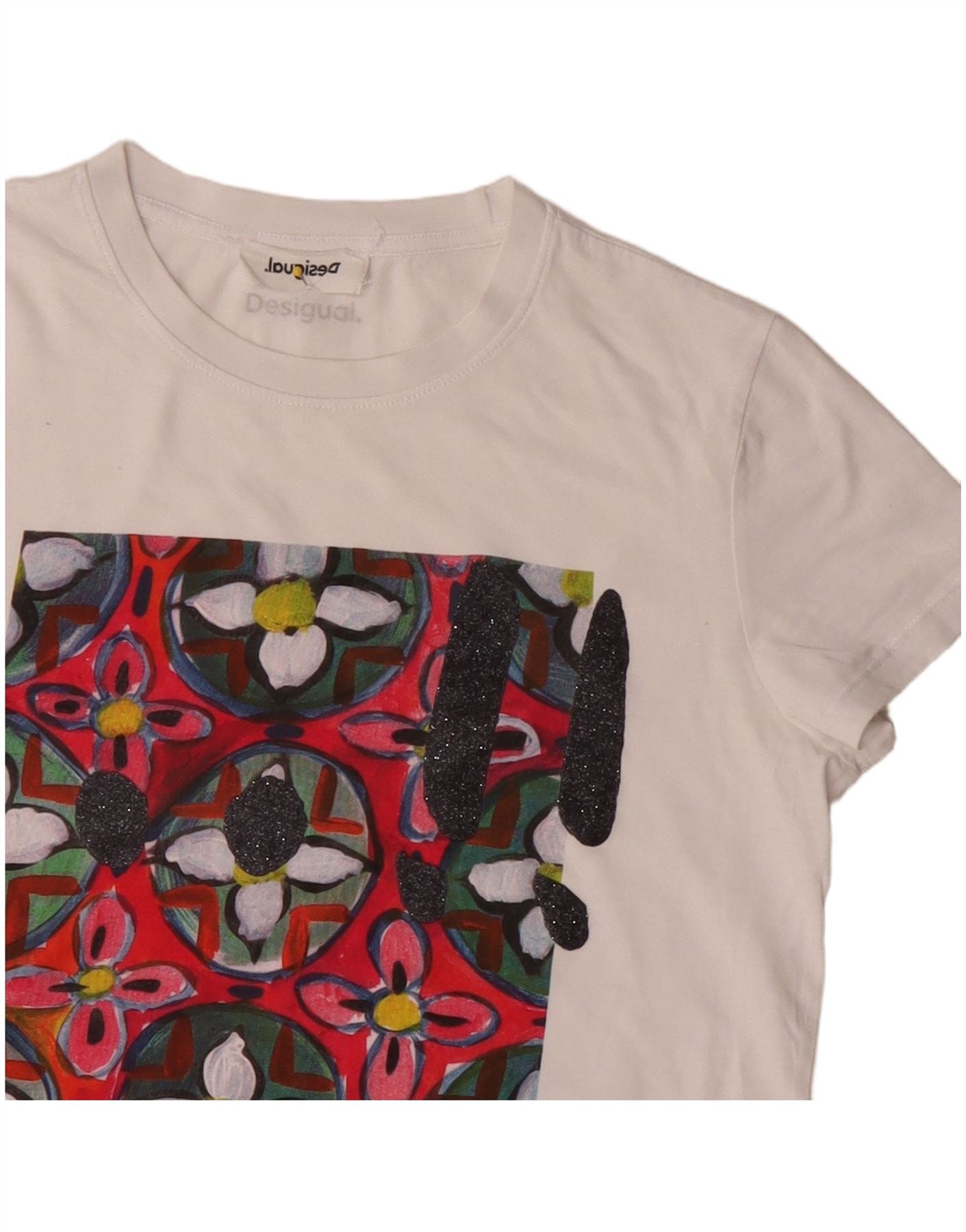 Desigual Dame Grafisk T-Shirt Top UK 12 Medium White