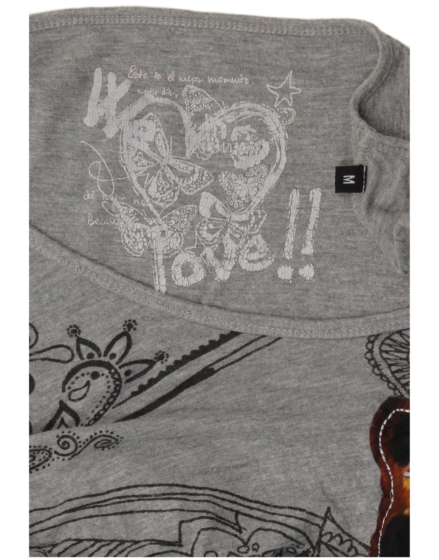 DESIGUAL Grafisk T-shirt top til kvinder UK 14 Medium Grey Butterfly