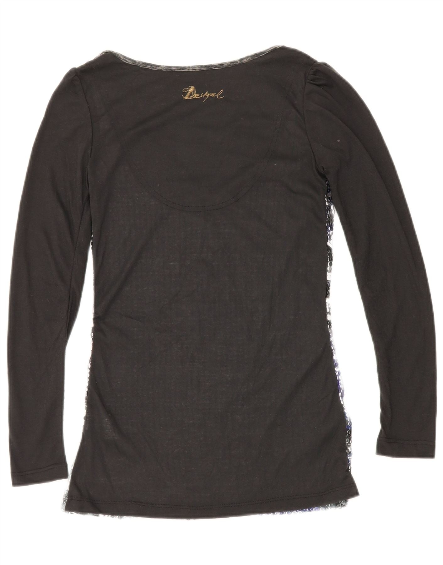 DESIGUAL Dame Grafisk Top Langærmet UK 10 Lille Sort Polyester