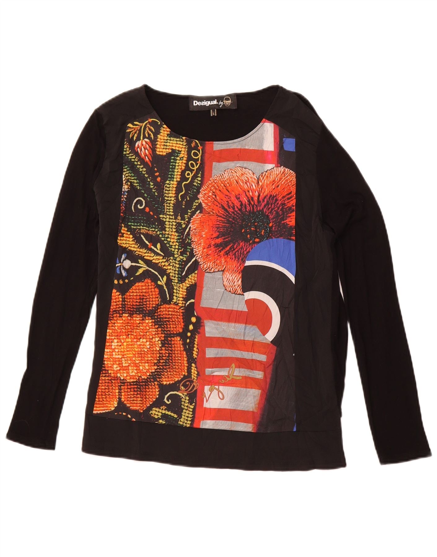 DESIGUAL Dame Grafisk Top Langærmet UK 14 Stor Sort Floral Viscose
