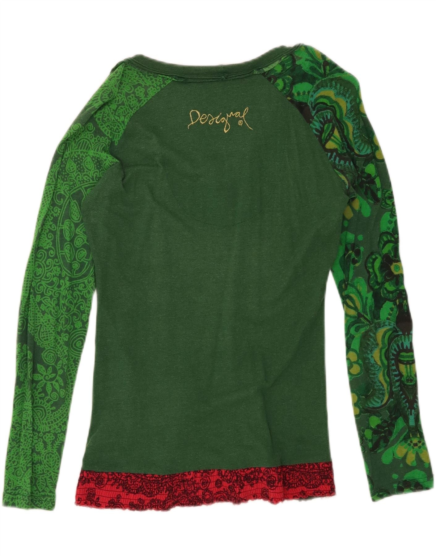 Desigual Dame Grafisk Top Langærmet UK 14 Medium Grøn Bomuld