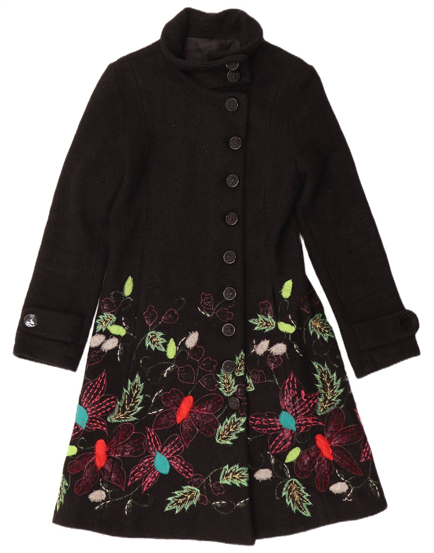DESIGUAL Dameoverfrakke UK 10 Small Black Floral Viscose Bohemian
