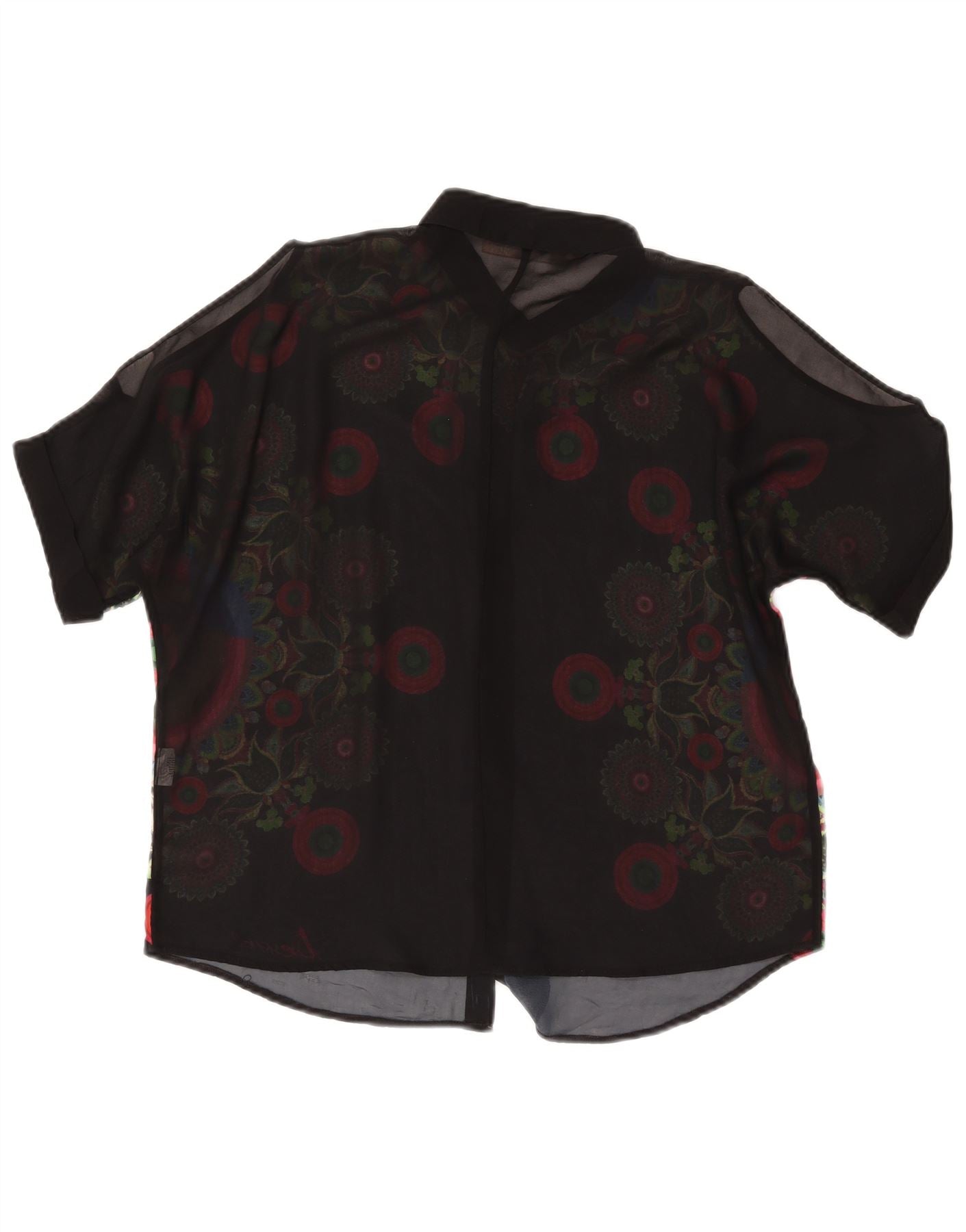 DESIGUAL Dame Se Through Shirt Bluse UK 16 Large Black Floral