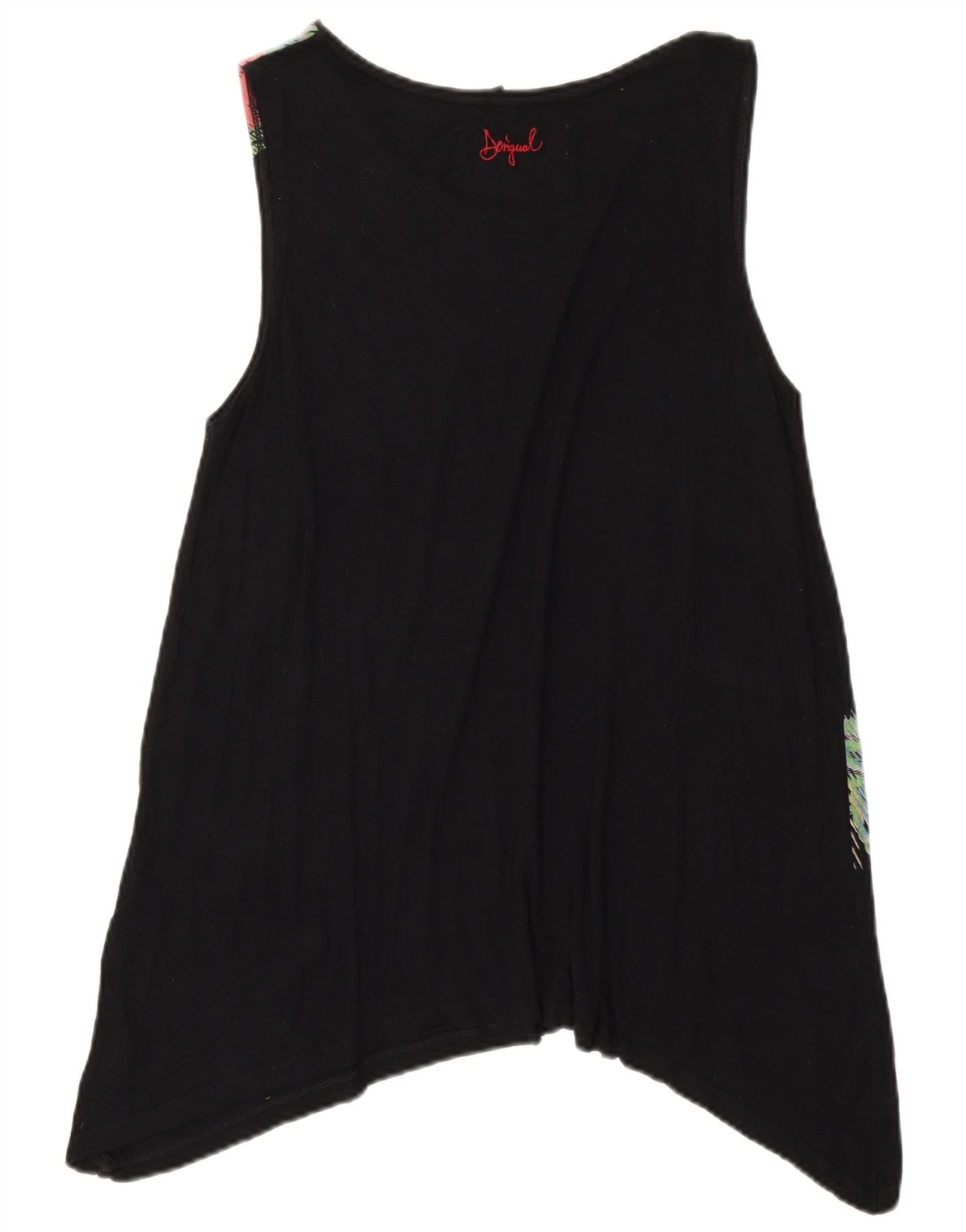 DESIGUAL Dame Ærmeløs Asymmetrisk Tunika Top UK 18 XL Sort Blomster