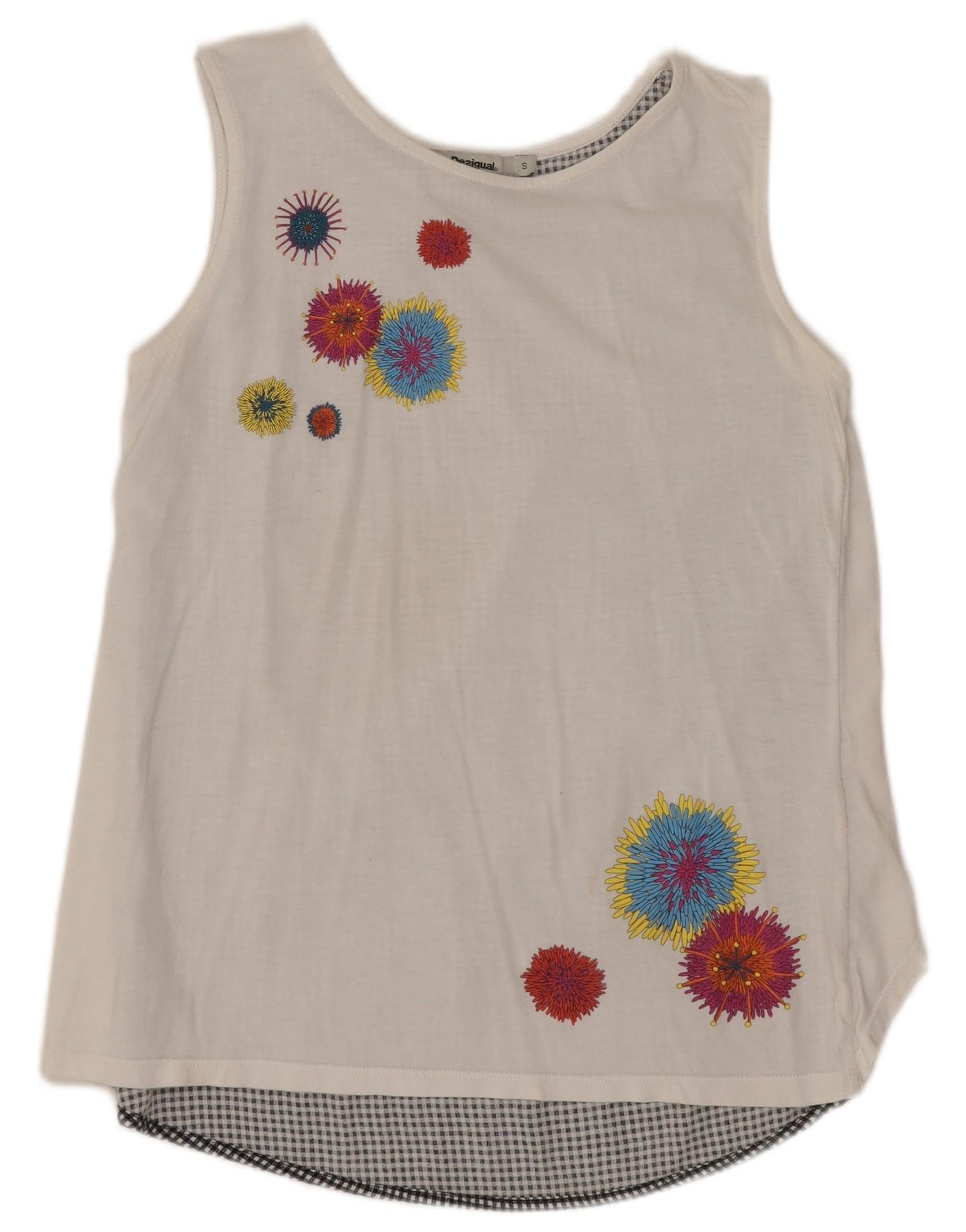 DESIGUAL Dame ærmeløs bluse Top UK 10 Small White Floral