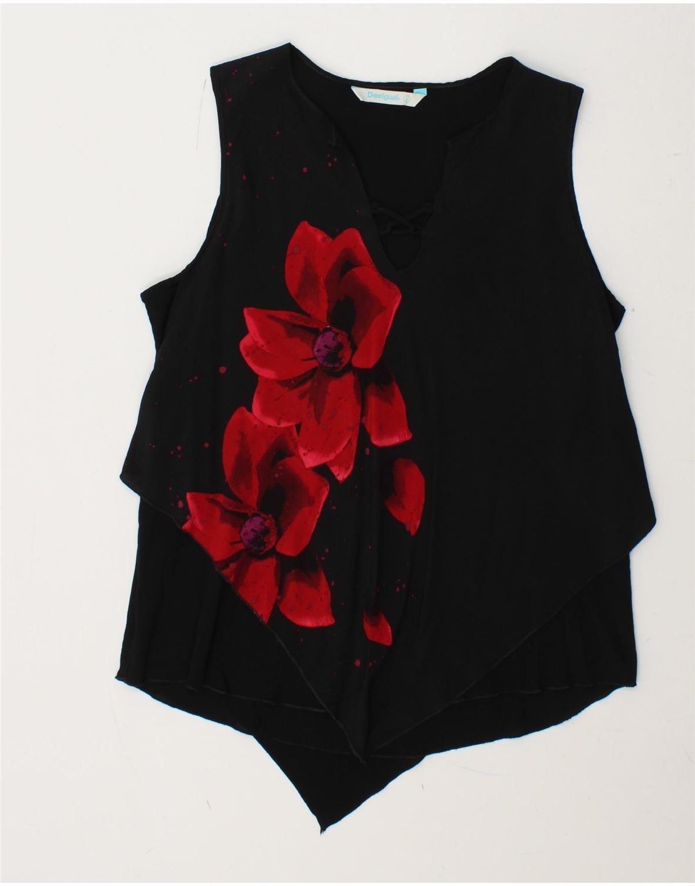 DESIGUAL Dame ærmeløs bluse Top UK 14 Large Black Floral