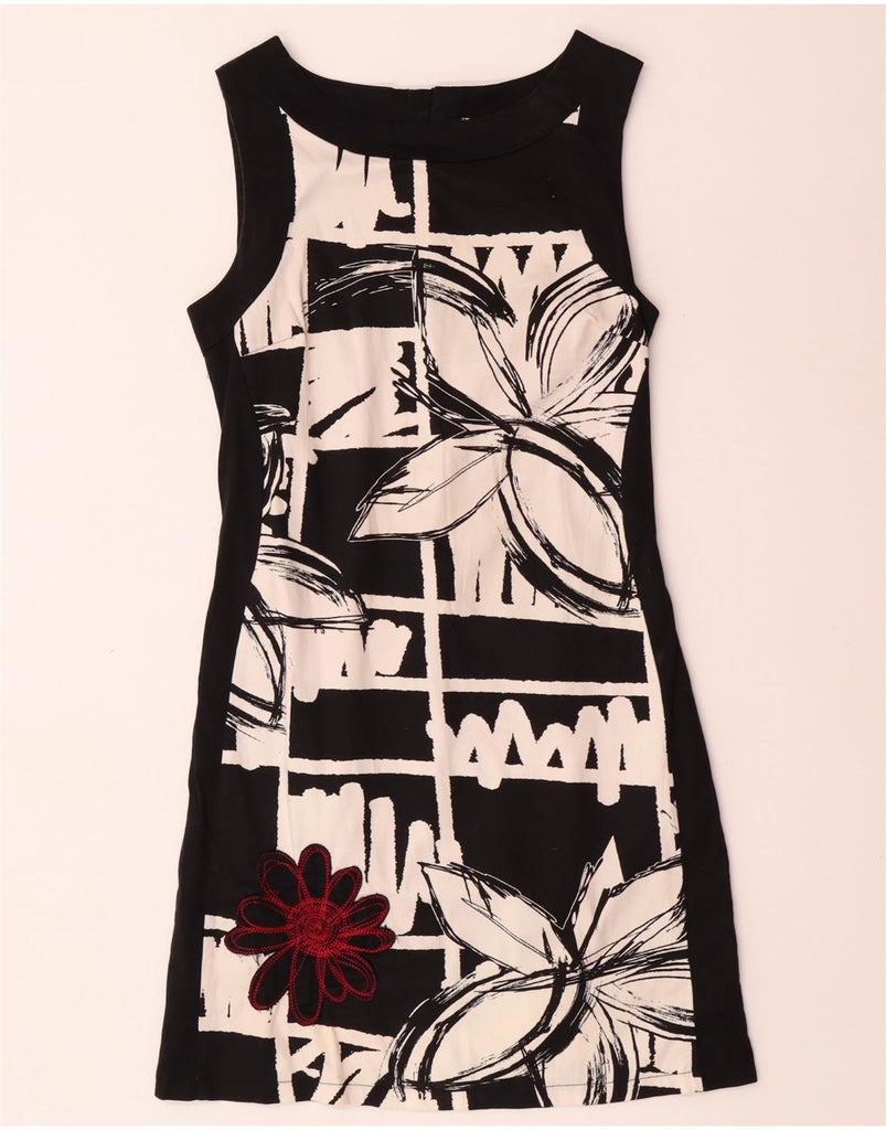 DESIGUAL Kvinders Ærmeløs Skede Kjole EU 36 Small Black Floral Bomuld
