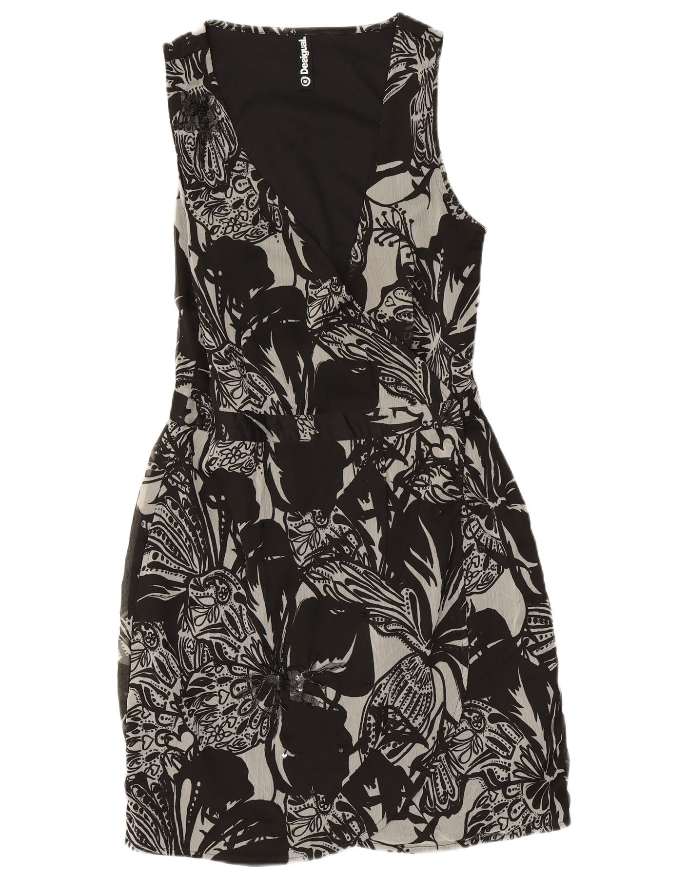 DESIGUAL ærmeløs slå-om-kjole til kvinder EU 38 Medium Black Floral Polyester