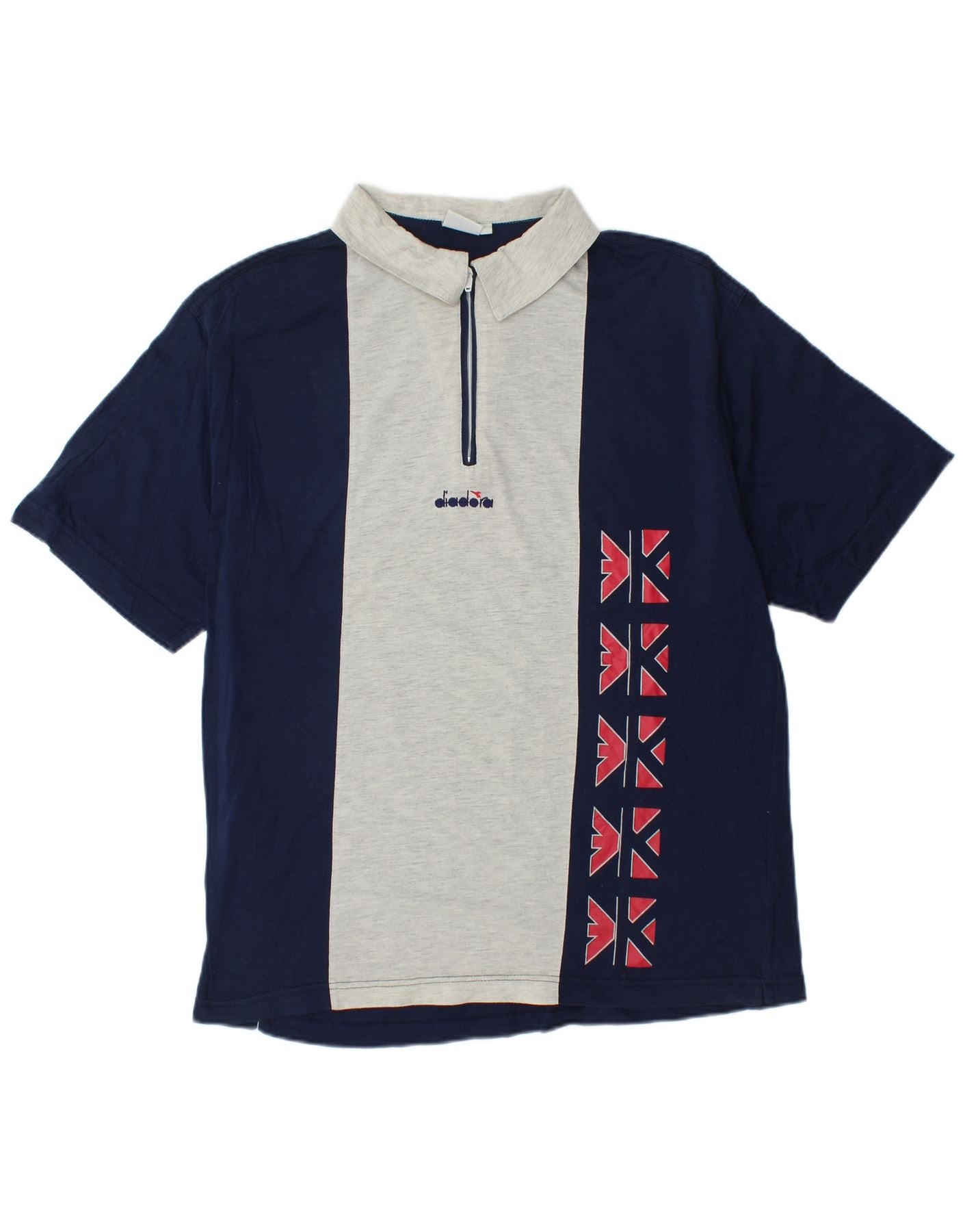 DIADORA Grafisk poloshirt til mænd Stor marineblå colourblock bomuld