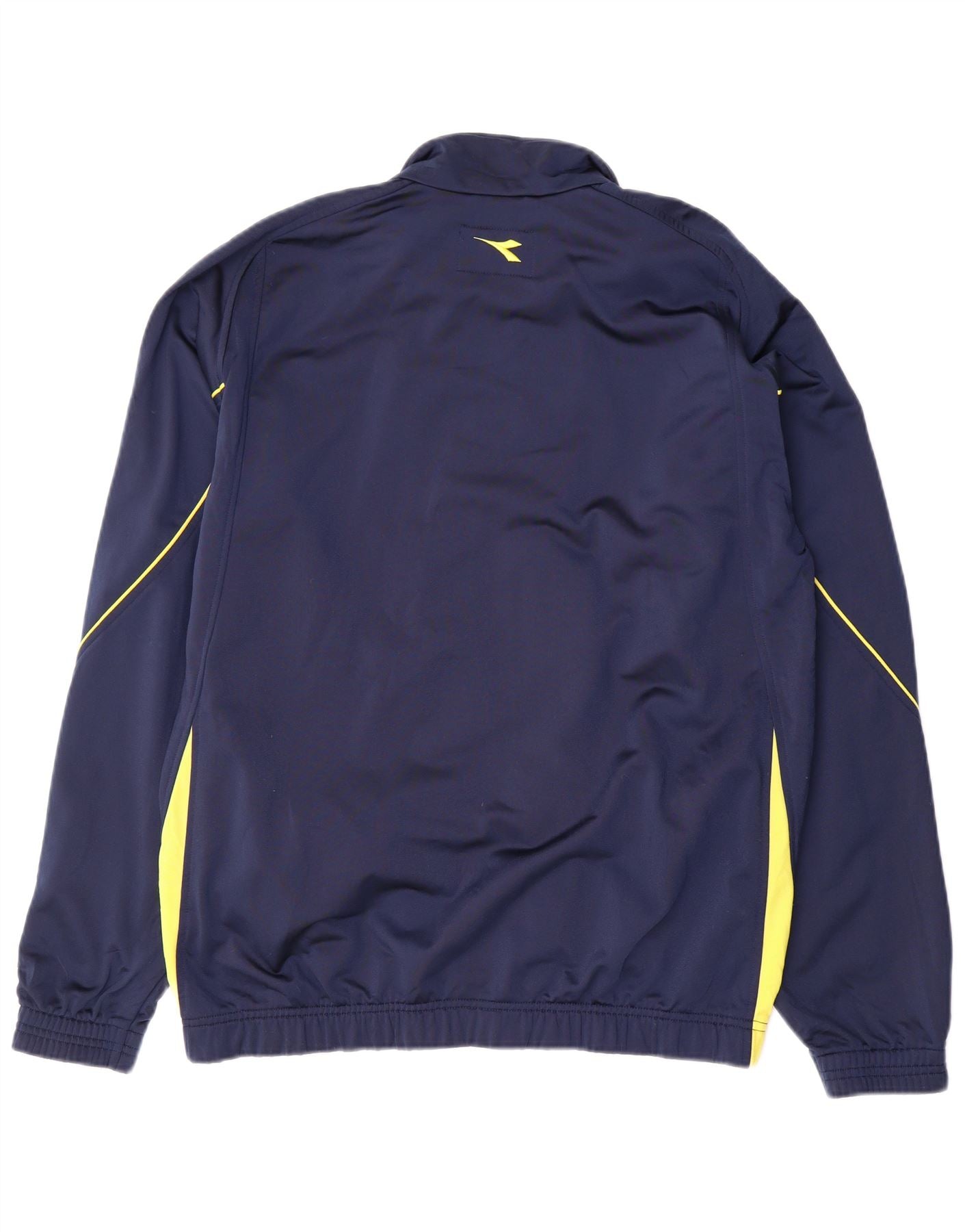 - AI beskrivelse: Denne Diadora træningsjakke til mænd er lavet af glat marineblå polyesterstrik. Den har en klassisk halsudskæring og en fuld lynlåslukning for alsidig brug. Lange ærmer og en normal pasform sikrer behagelig bevægelse. Gule accenter langs ærmer og sider tilføjer en dynamisk kontrast. Diadora-logoet er subtilt placeret og fuldender dette sporty design.