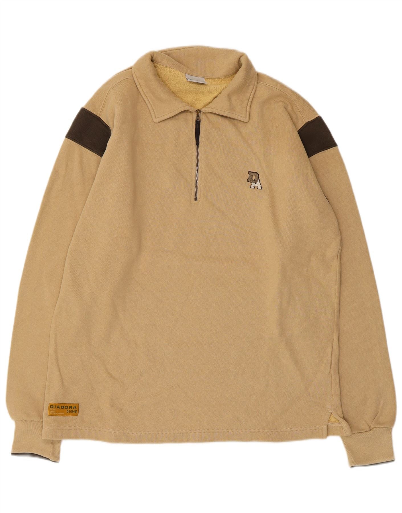 DIADORA Herre Polo Neck Sweatshirt Jumper Stor Beige Colourblock Bomuld