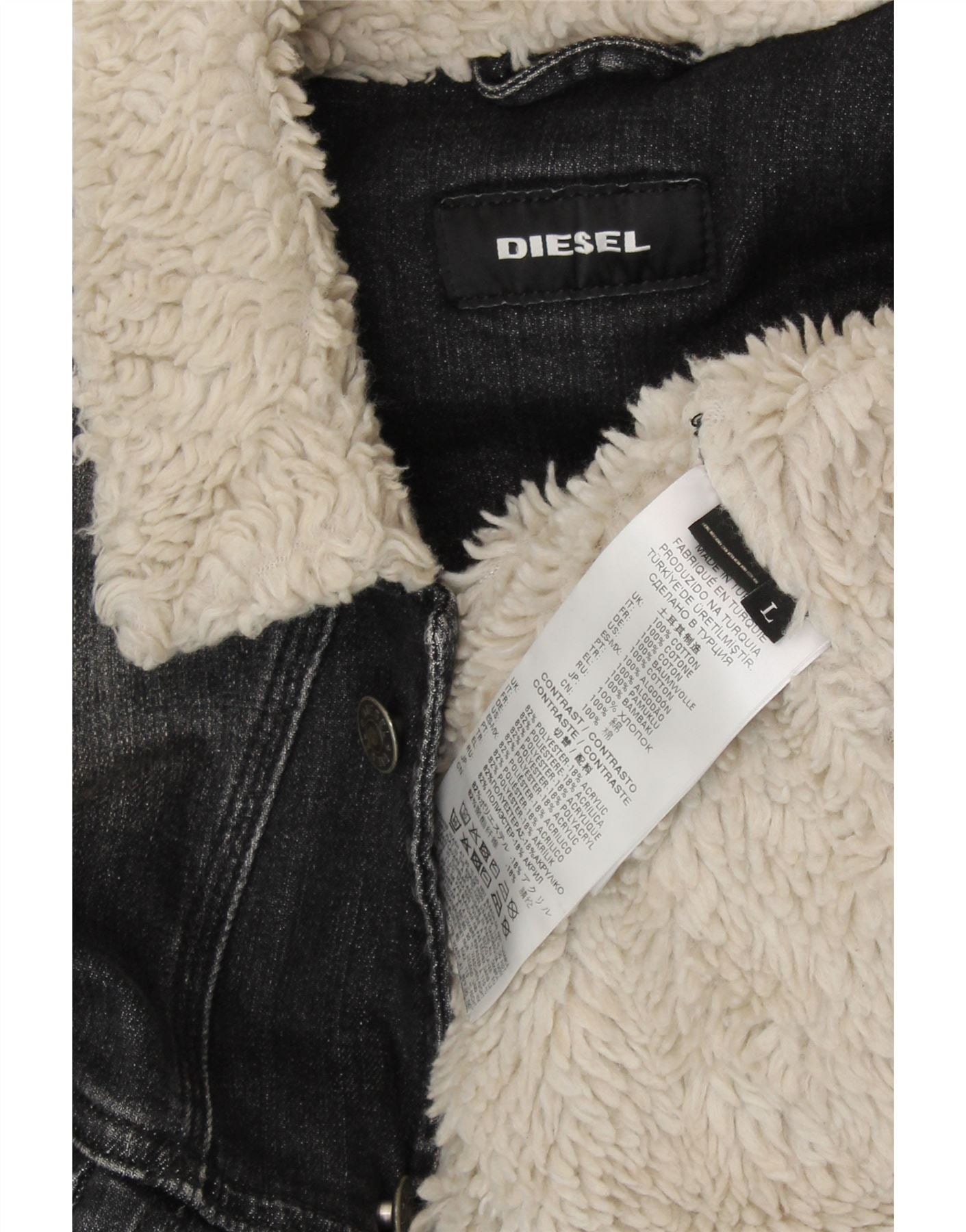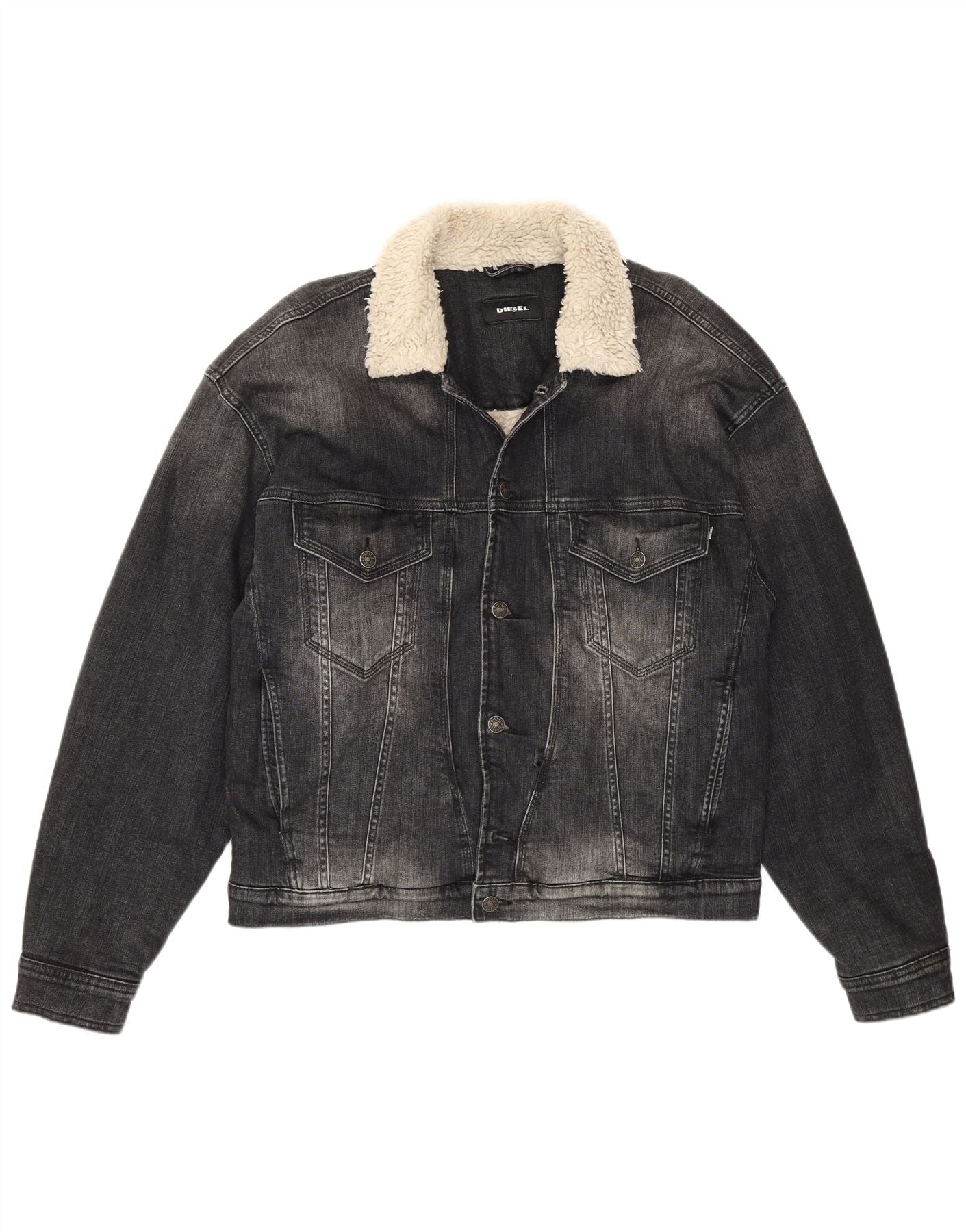 DIESEL Herre Denim Sherpa Jacket UK 40 Stor Grå Bomuld
