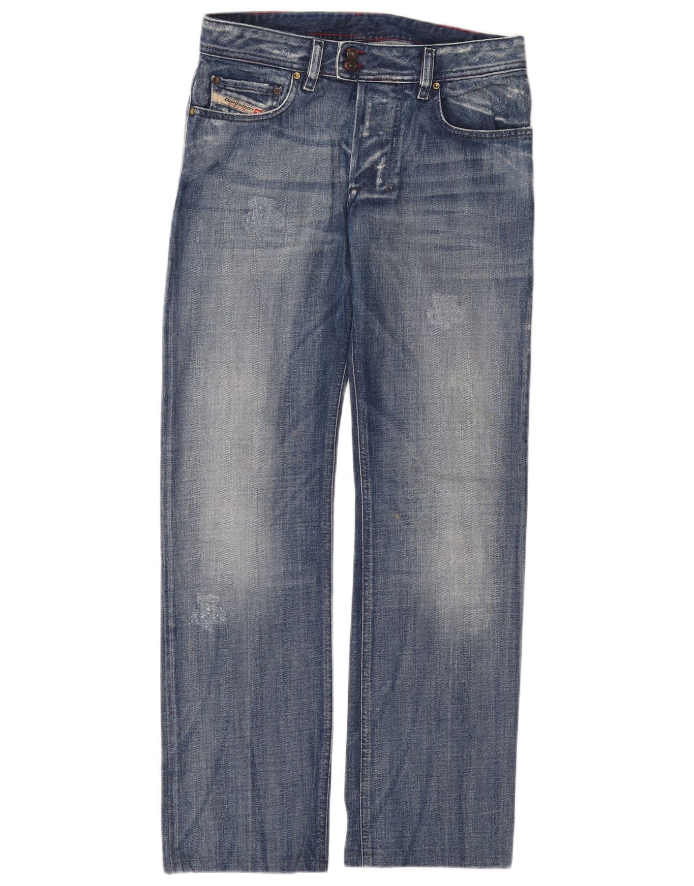 DIESEL Herre Distressed Straight Jeans W30 L31 Blå Bomuld