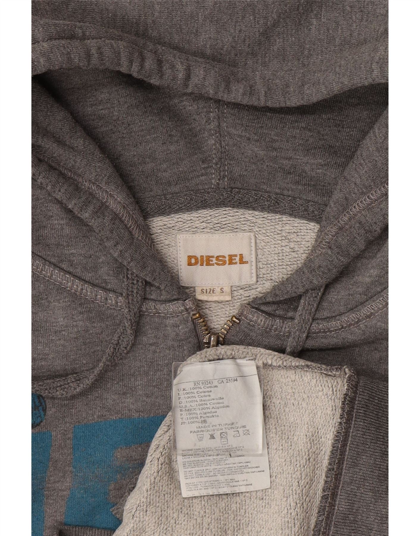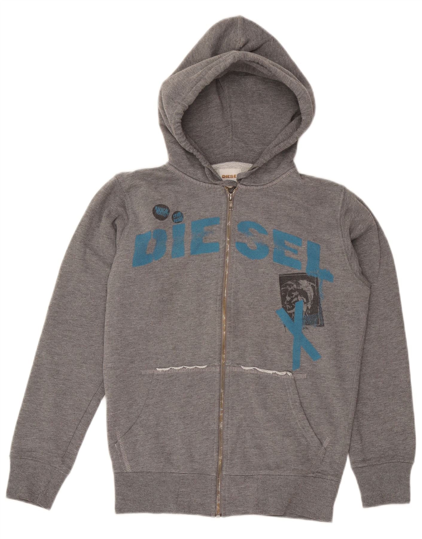 DIESEL Herre grafisk hættetrøje med lynlås lille grå bomuld