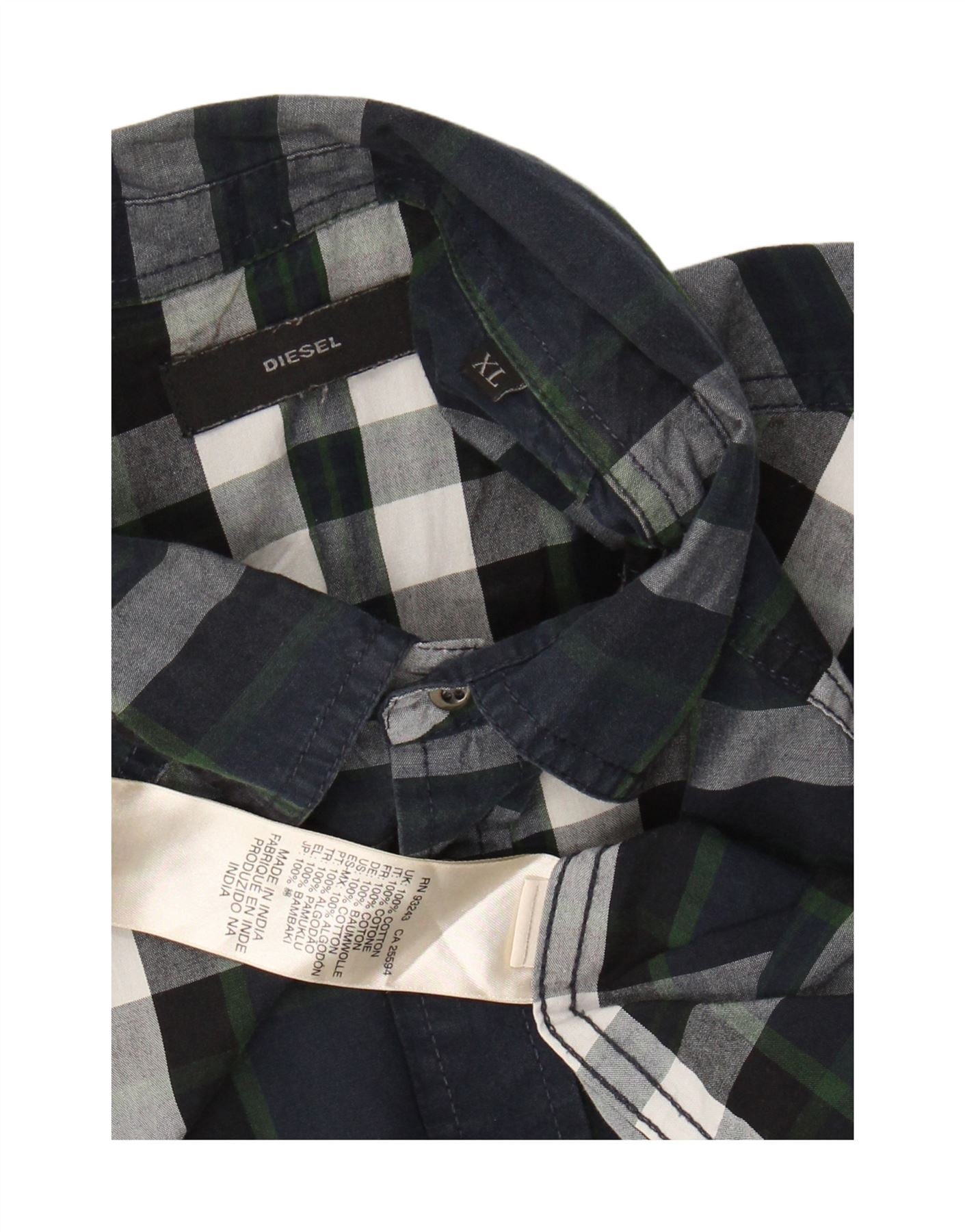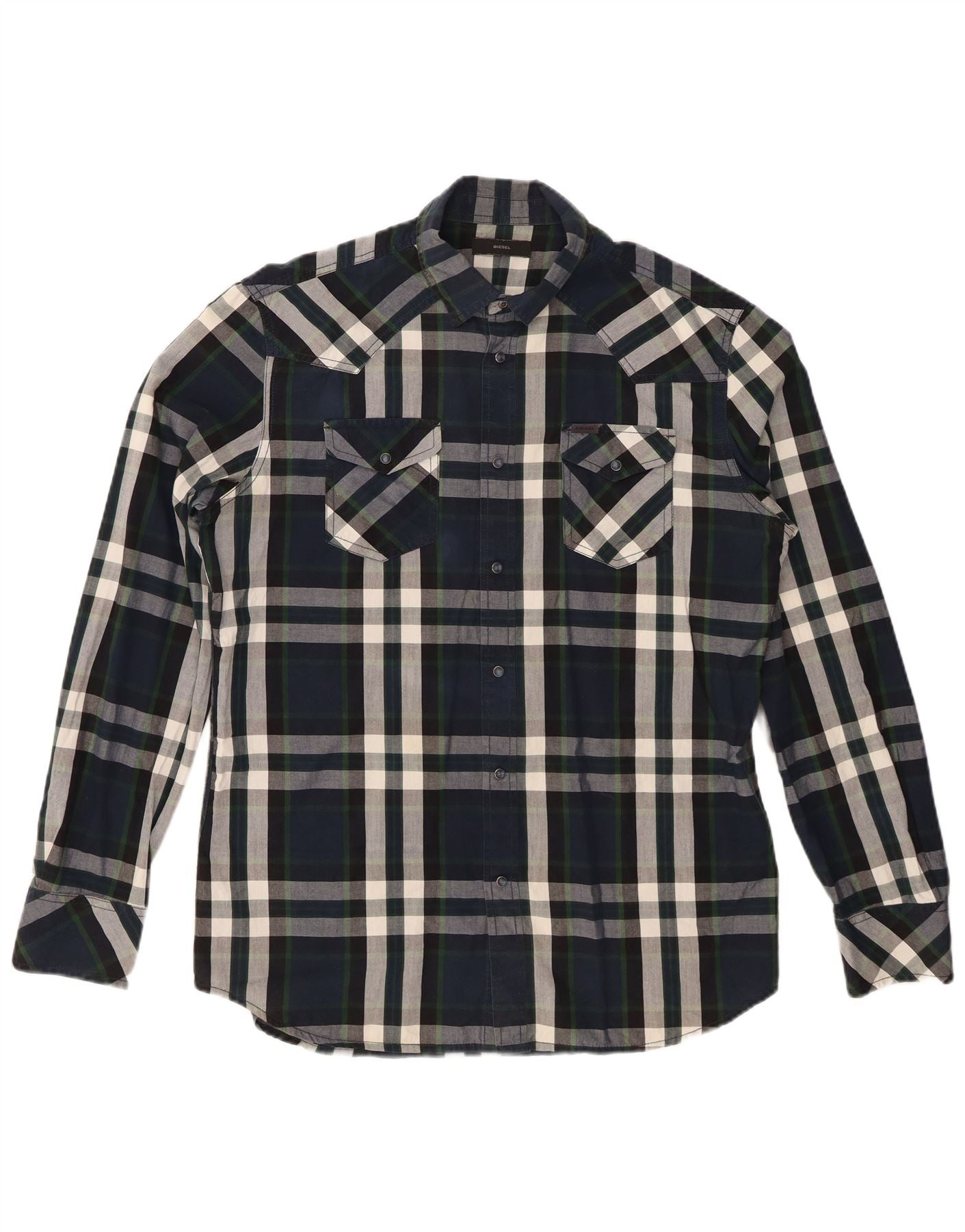 DIESEL Herreskjorte XL marineblå ternet bomuld