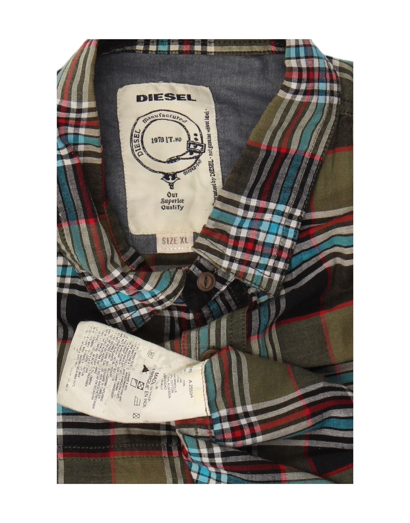 DIESEL Mens Short Sleeve Shirt XL Green Check Cotton