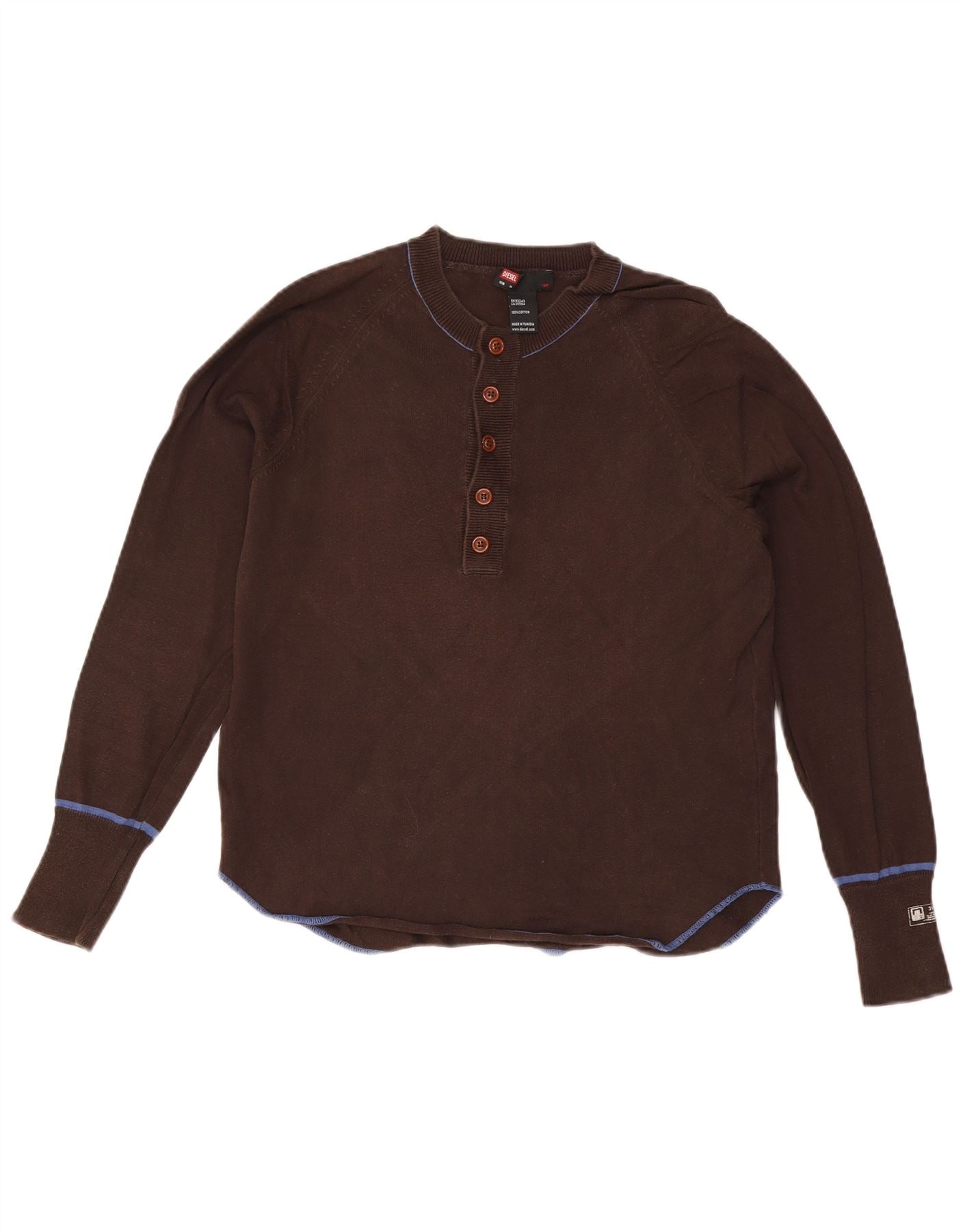 DIESEL Dame Button Neck Jumper Sweater UK 14 Medium Brown Bomuld