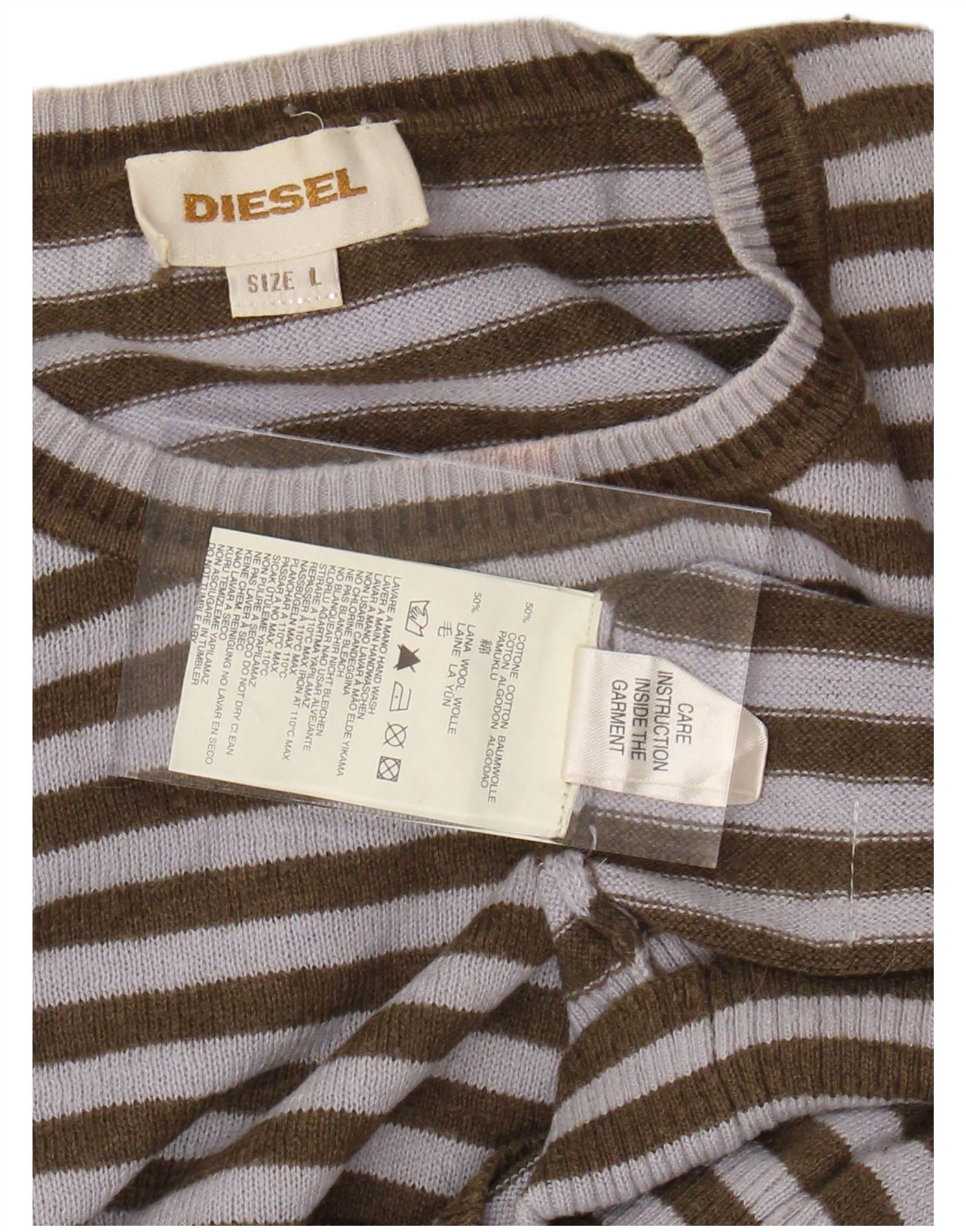 DIESEL Dame sweater med rund hals DK 16 Stor Khaki stribet bomuld