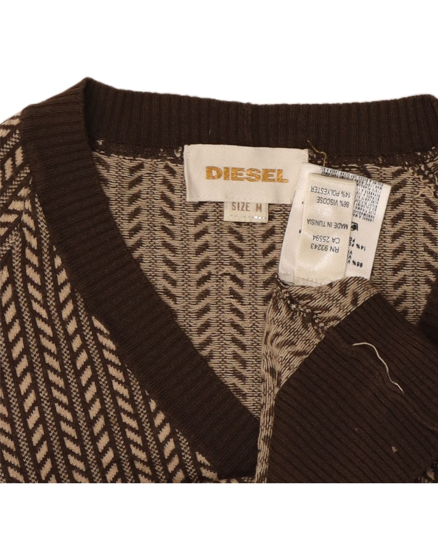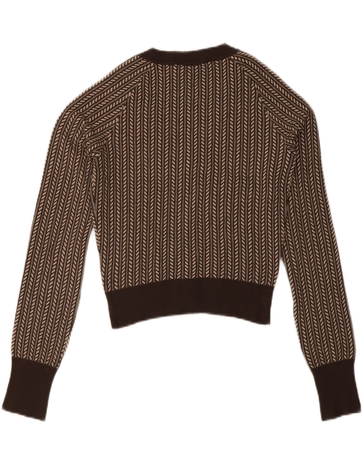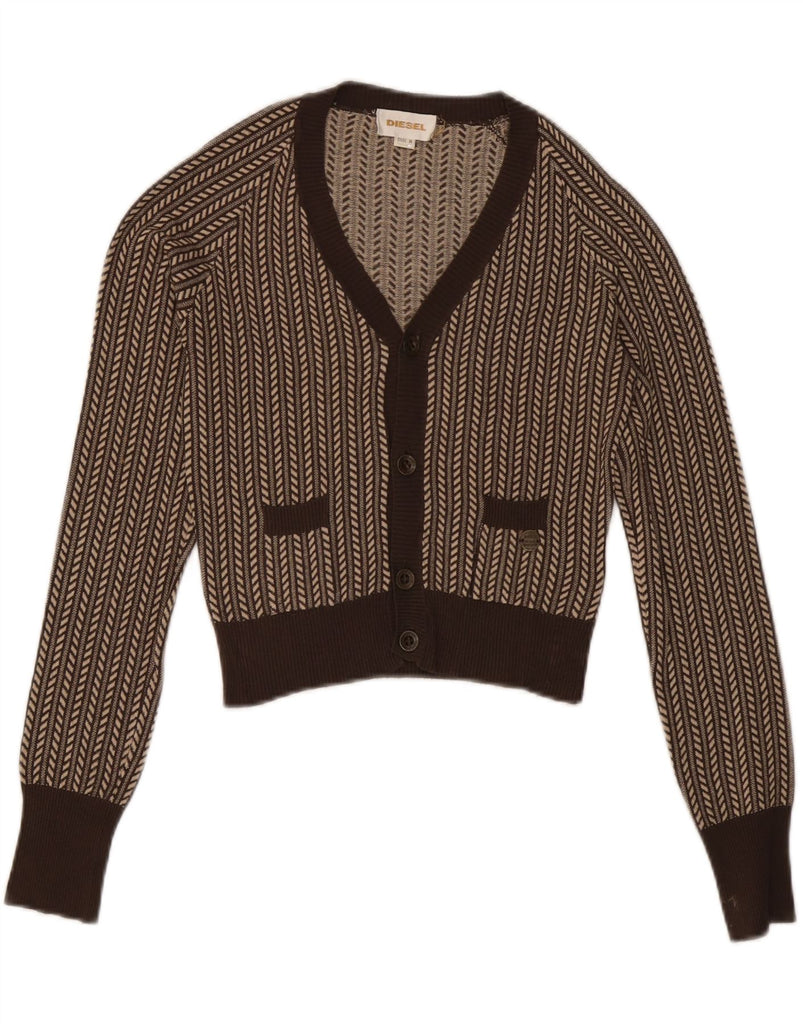 DIESEL Dame Crop Cardigan Sweater UK 12 Medium Brun Stribet Viscose